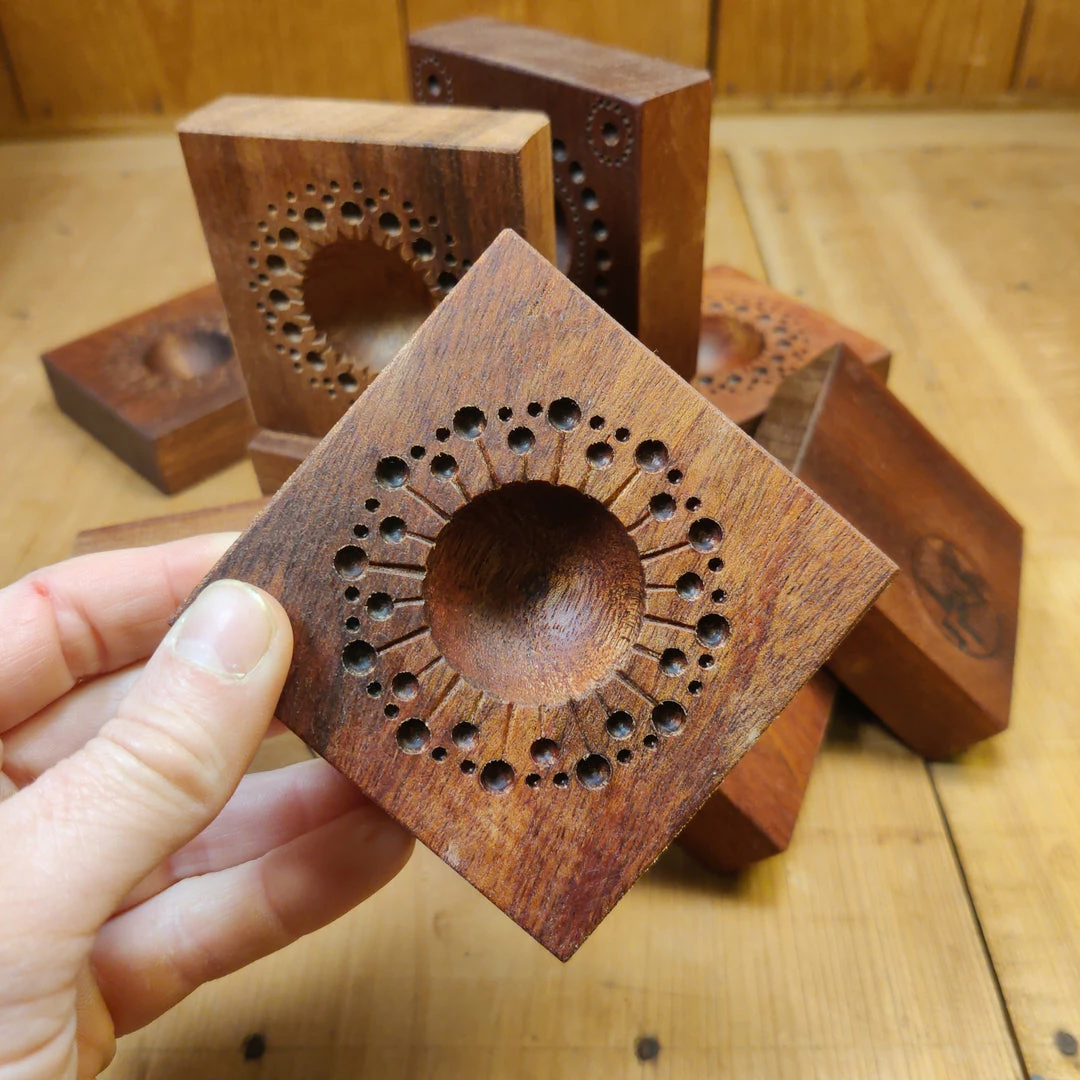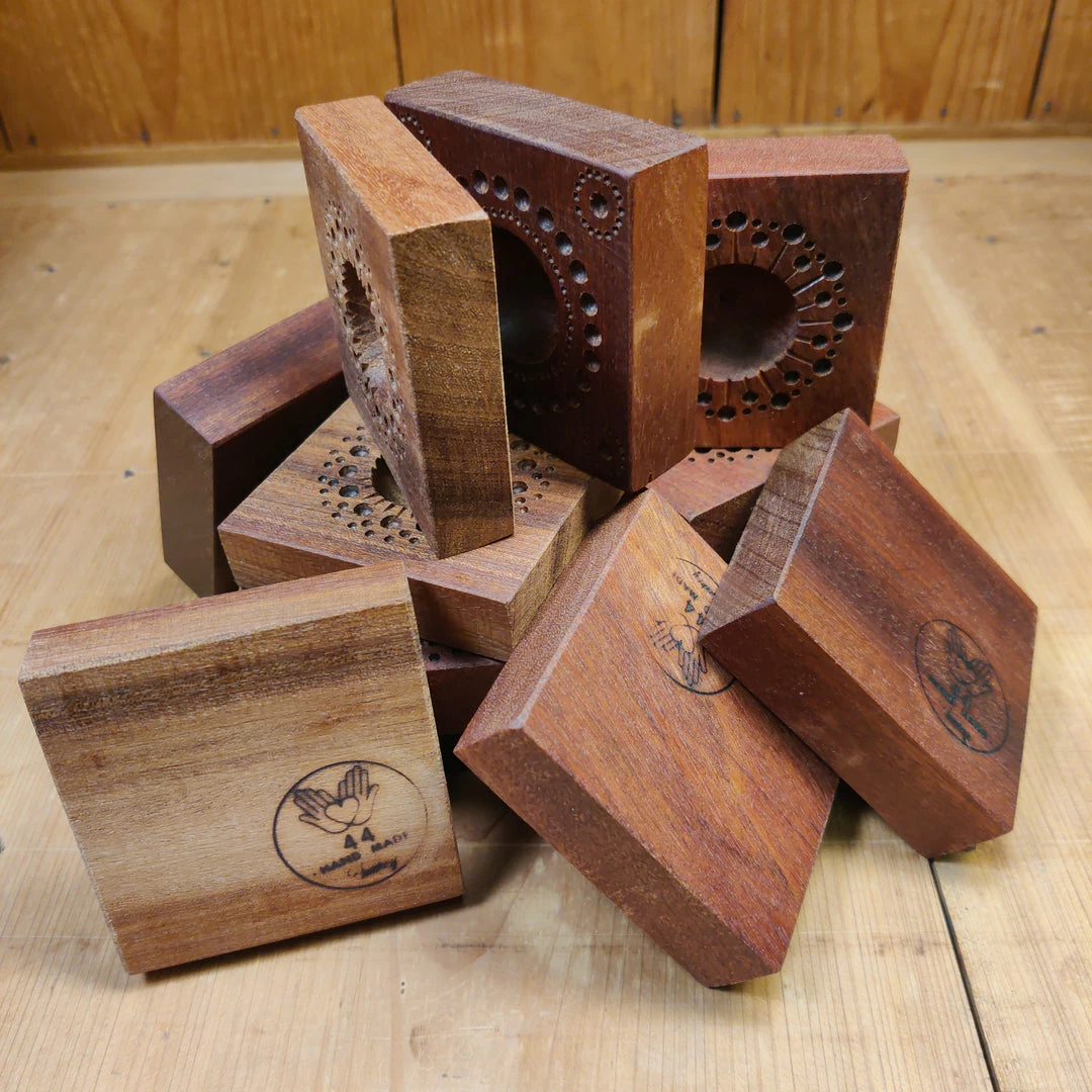 A select, individual ravioli square mold from our box of unique hand-carved pieces of sapele wood squares, made in Turkey by a father-daughter team.