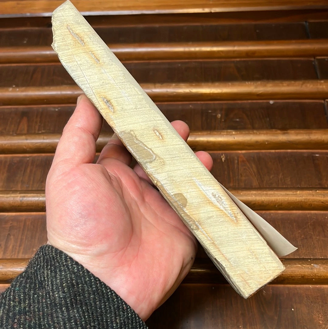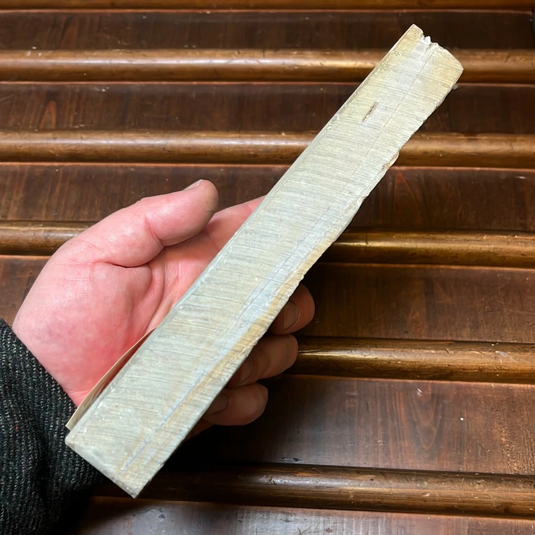 Old stock stone from theย Tomae strata of the Ohira mine. A hard fast cutting stone that creates a fine mirror finish with some good contrast between jigane and hagane. An excellent hard stone that is almost too hard for knives but not. That said this stone might not get along with steels with large carbides, expect scratchy-ness on busy alloysย or less refined heat treatments.ย