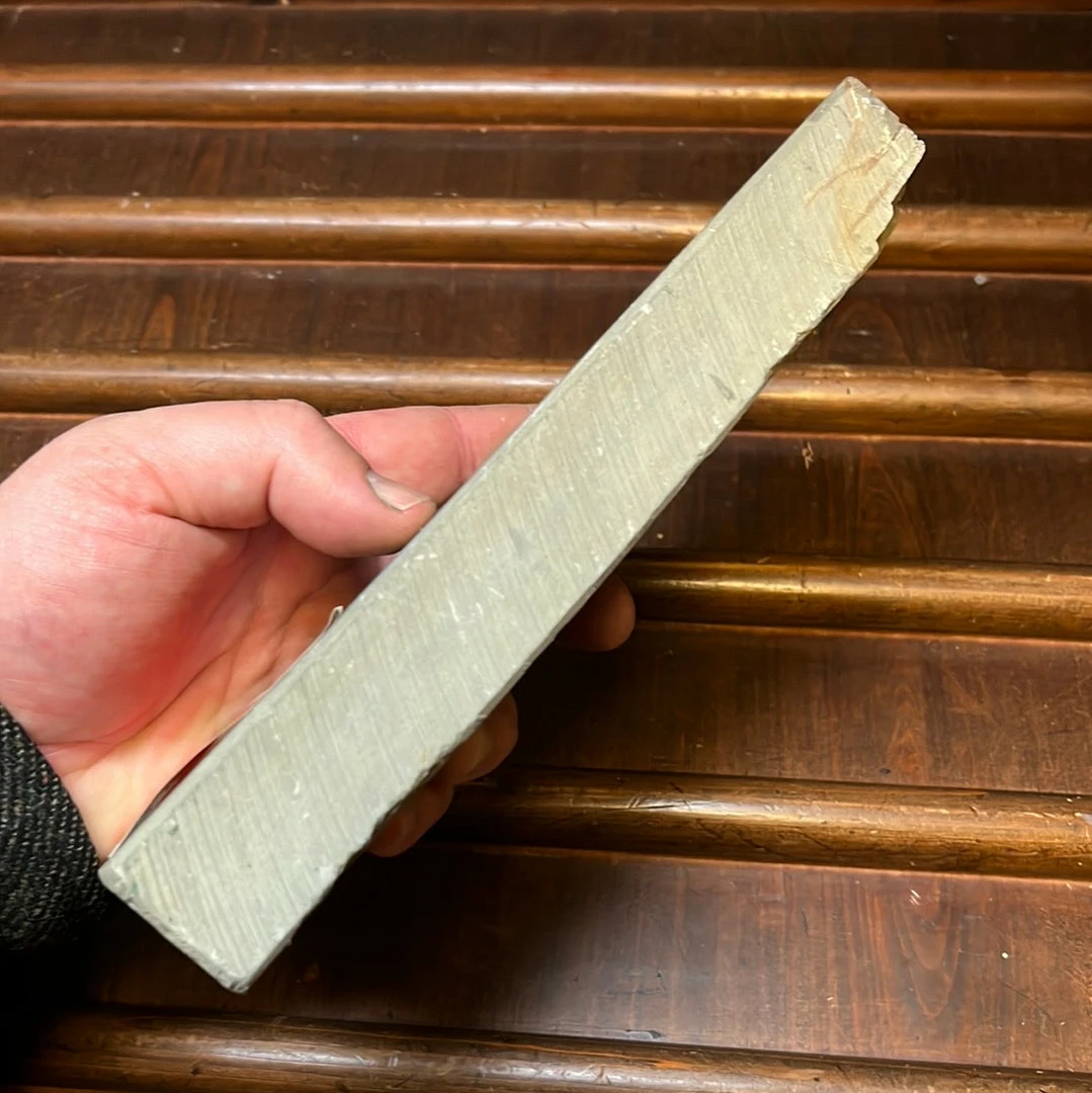 Old stock stone from theย Tomae strata of the Ohira mine, a fast and easy going stone that quickly makes a fine sub mirror kasumi. It does not appear to change finish with less water and pressure, but it is buttery and friendly. A great progression stone for finer finishes or a good medium fine finish for knives that like a fine but bitey edge.ย