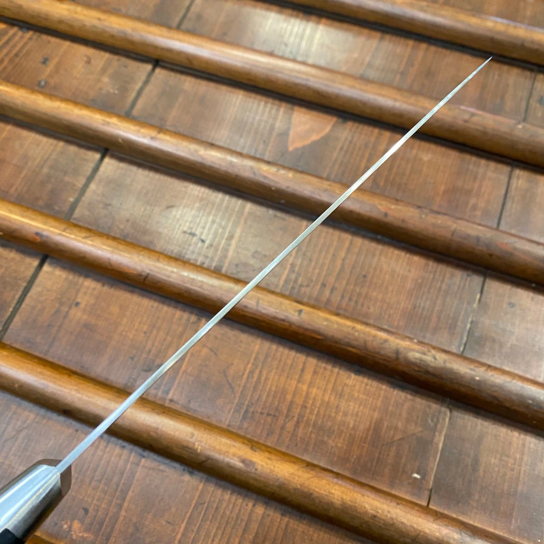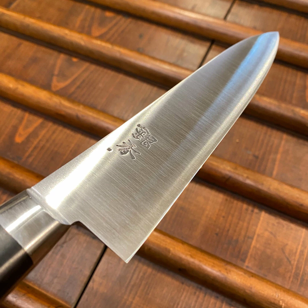 Ashi Hamono was established in 1948 in Sakai City Japan; a major center of traditional knife making. Ashi makes knives utilizing a one piece of steel (rather than forge laminated 2/3 layer blade), called zenkou construction. Ashi’s Ginga line is famous for it’s thinness and precision, utilizing top quality carbon and stainless steels. These knives have an excellent fit and finish, from their grinding to heat treatment and hafting.