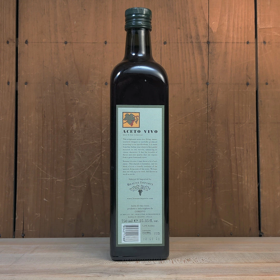 Aceto Vivo is a lively, unpasteurized red wine vinegar. Many commercially produced vinegars fall short on flavor, balance and overall character. Much of this has to do with the fact that they are overwhelmingly produced from inferior wine, heated to disable any live cultures, and bottled without any exposure to the softening and flavor enhancing influences of oak. Aceto Vivo is produced to quality specifications at an artisanal acetaia in Tuscany on one of Chianti Classico’s most distinguished domaines.