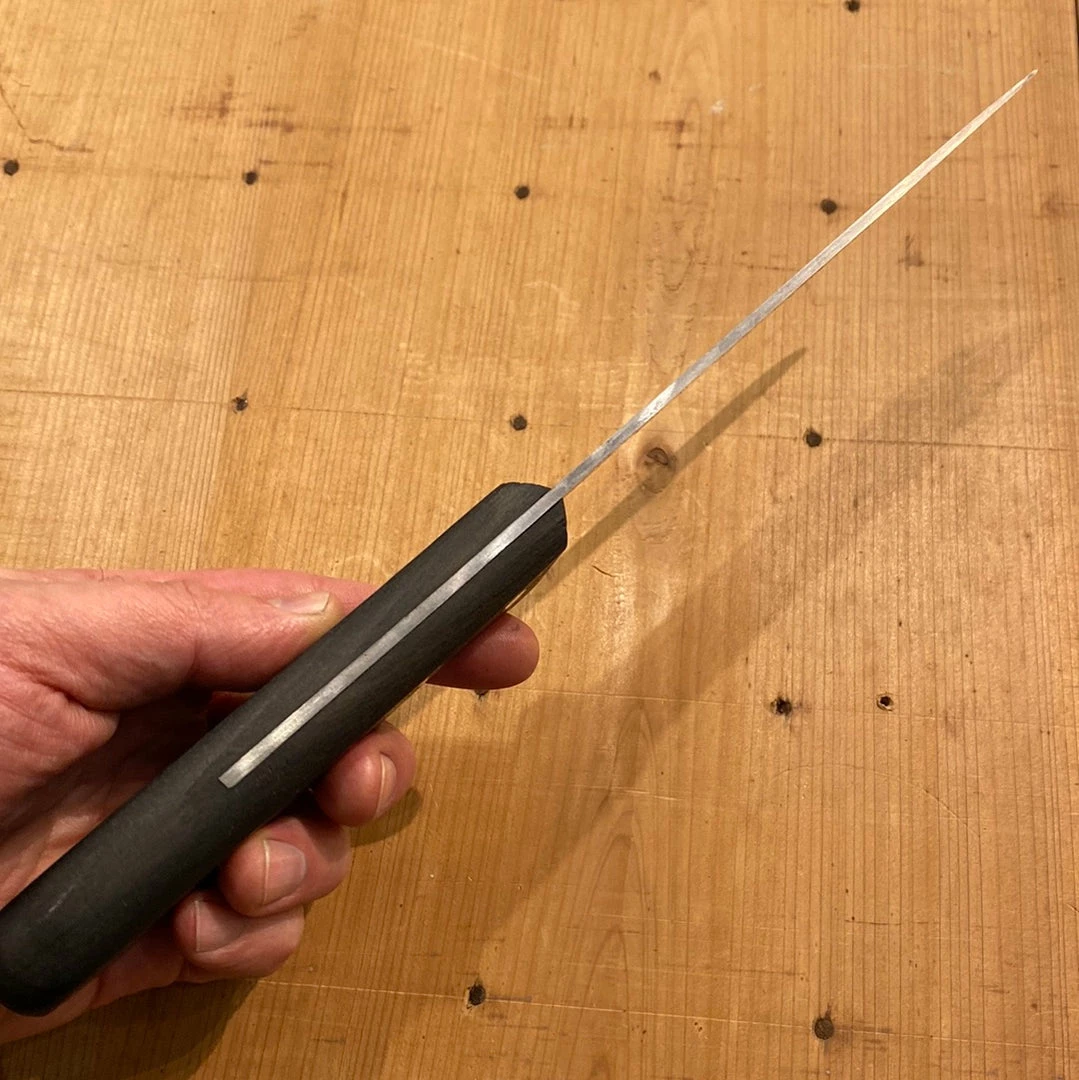 Carbon steel blade with walnut handle, sharpened a few times but with lots of life left.