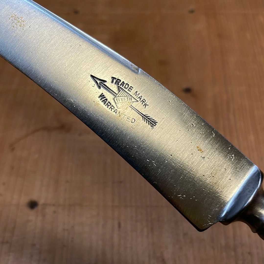 Wyeth Hardware was established in 1860 and the Boker marking reflects the 1915 version of the tree markings which was used for a time afterwards, this one looks to be approximately from the teens/ 1920’s era.
