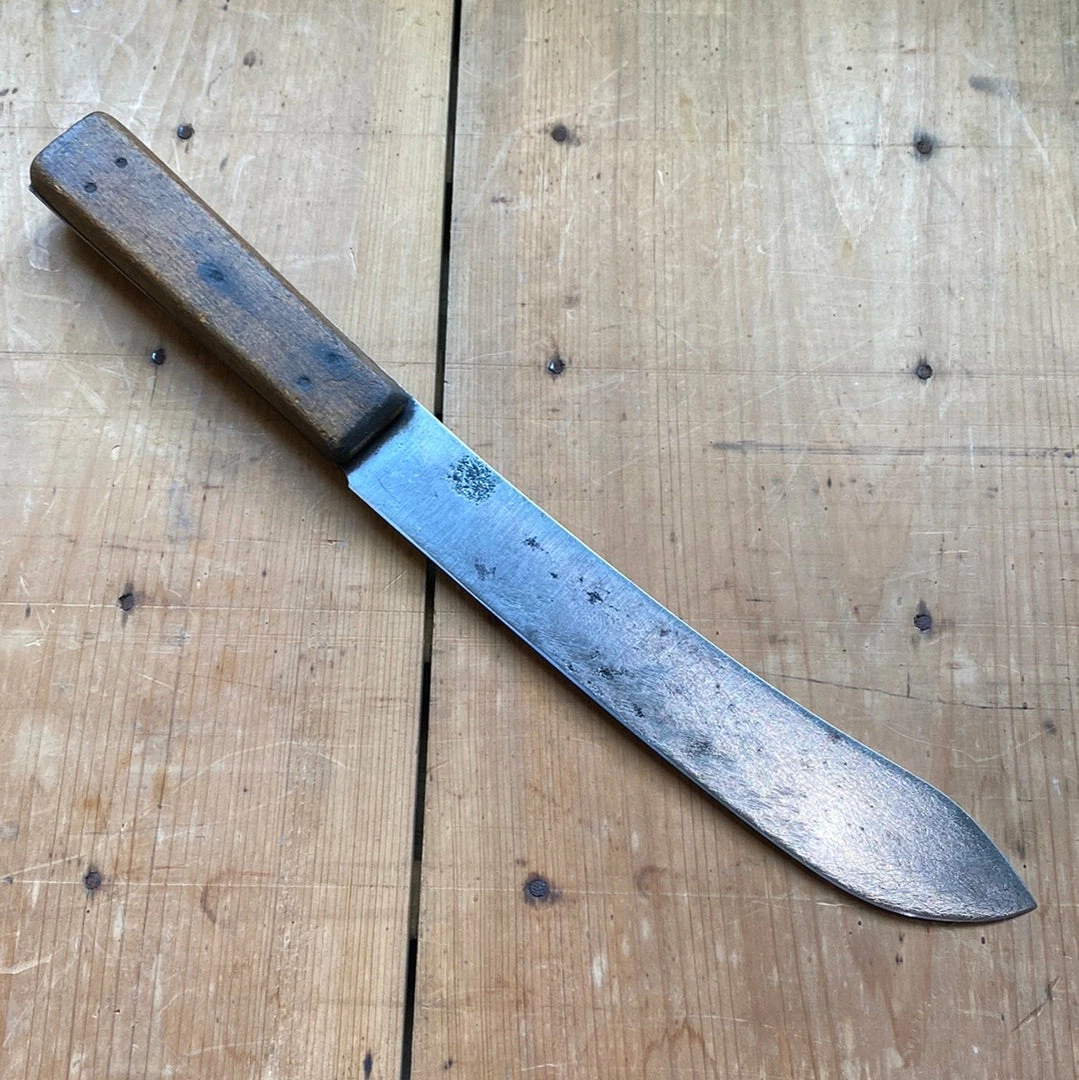 Blade is nice and full, beech handle is secure, blade has seen some rust leaving patches of pits and some grinder marks but is otherwise in good shape, no abusive treatment or heavy sharpening.