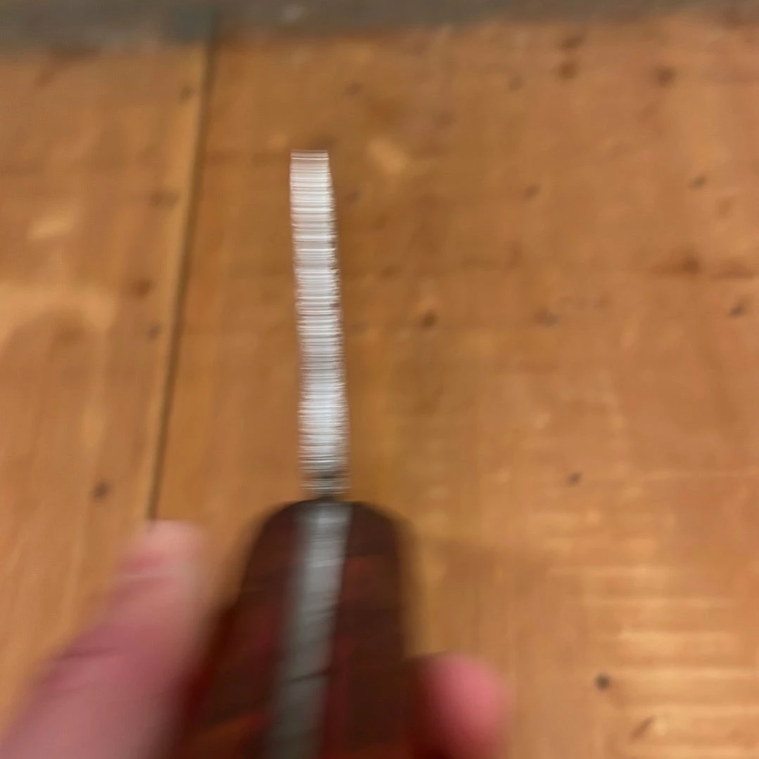 A few dings on the spine but otherwise blade is full and freshly sharpened and the handle is nice and secure.ย