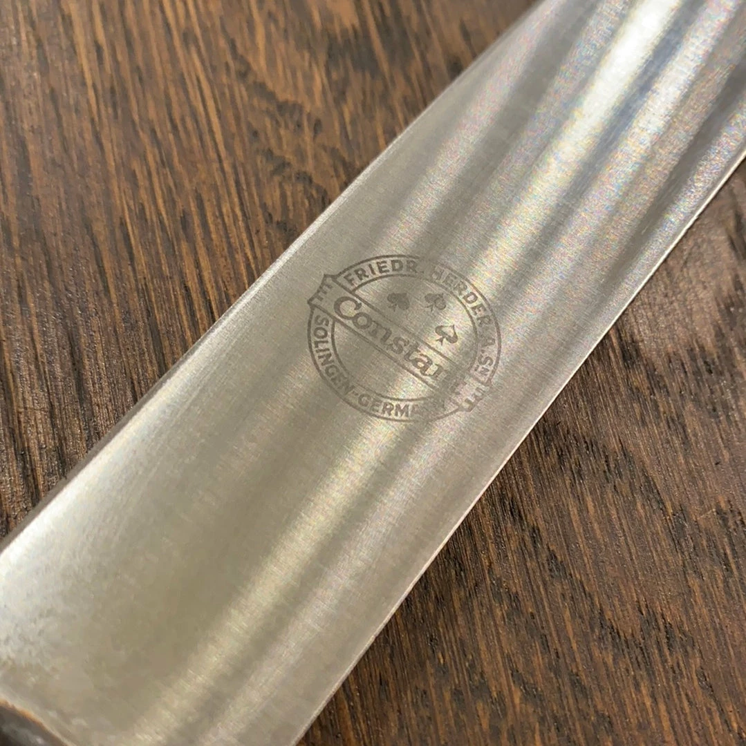 Friedr. Herder Abr Sohn company is the longest continually operating knife making operation in Solingen Germany. It’s famous Pikas spade logo was registered in 1727 although their place in Solingen’s blade making traces further back. Friedr Herder has kept many old patterns in carbon steel in production and offers a variety of new production knives for professionals and home cooks.