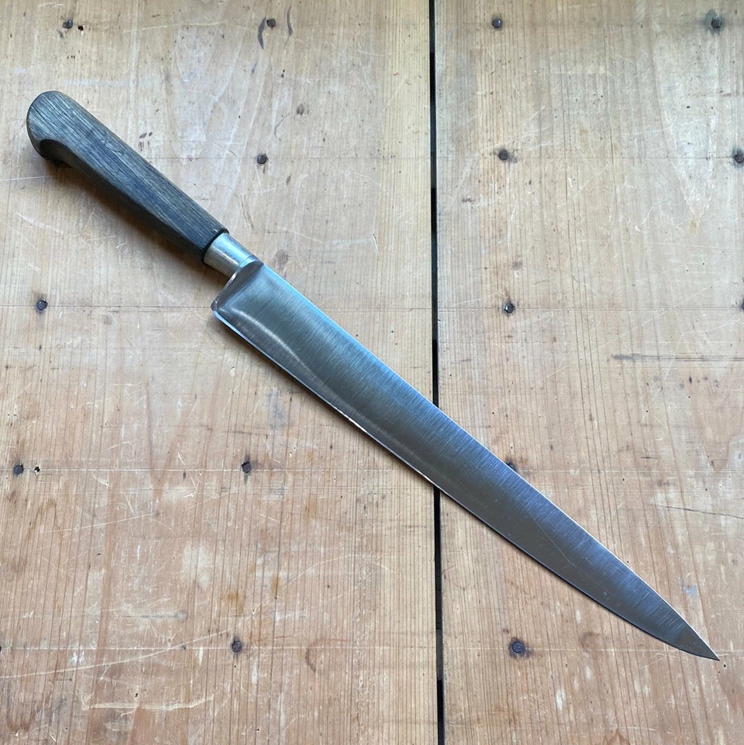 Thiers Issard 4 Star Elephant brand 9.75โ Nogent style slicer with stainless blade, nickel ferrule and walnut handle made in Thiers France in the 1960โs or 70โs.