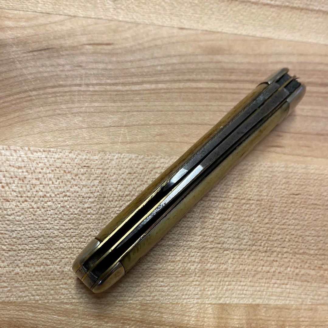 Blades are mechanically good, small wiggles when open but strong springs. bone haft is chipped and cracked on one side, so price is reduced for that