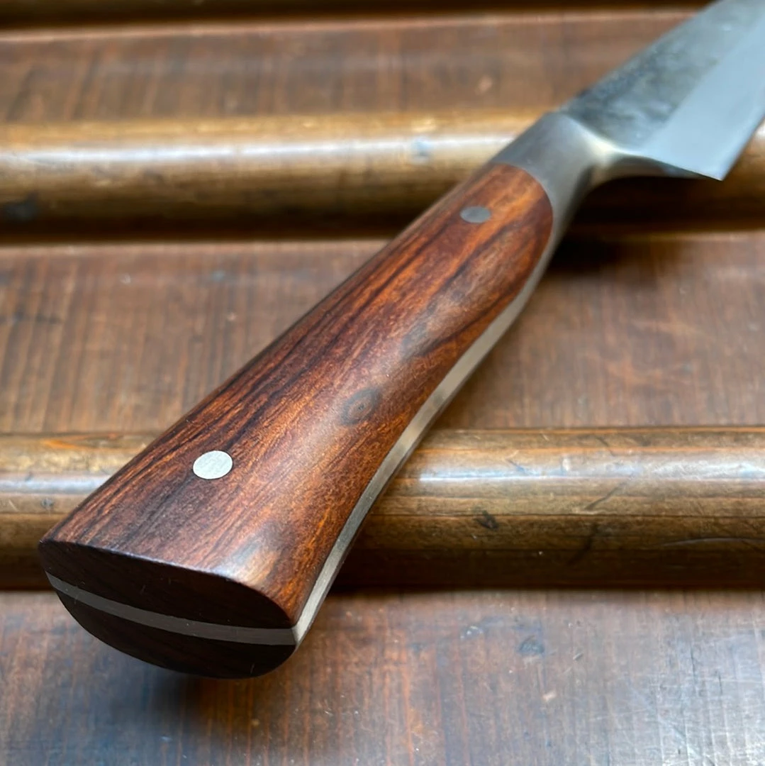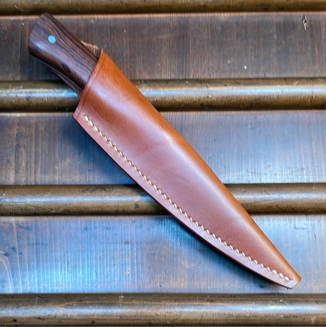 Forged, ground and handles made by hand at the Blenheim Forge works in Peckham South London. Blenheim Forge knives are made with C105 carbon steel and English woods and handle materials.