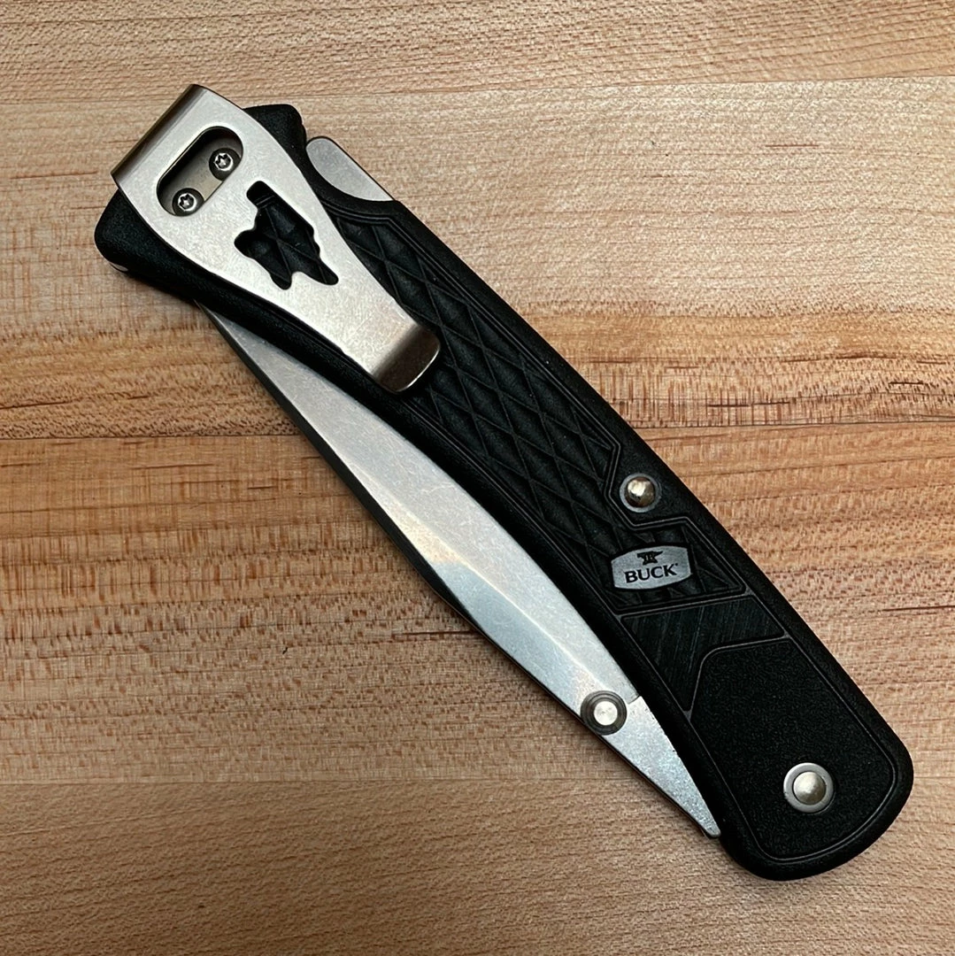 An EDC knife based on an American classic, the 110 Folding Hunter, the 110 Slim possesses the same traditional features but sports a more modern look. The deep carry pocket clip is added based on the overwhelming customer demand and allows for quick and easy access in any situation. The 8.625″ knife folds down to 4.875″ when closed for easy carry. With easy one-handed opening, the 420HC stainless steel blade provides supreme edge retention and is finished with Buckโs Advanced Edge2x Blade Technology. To decrease the weight and thickness, the heavy bolster and handles are replaced with lightweight molded nylon while still maintaining the same quality and rigidity of the original 110.