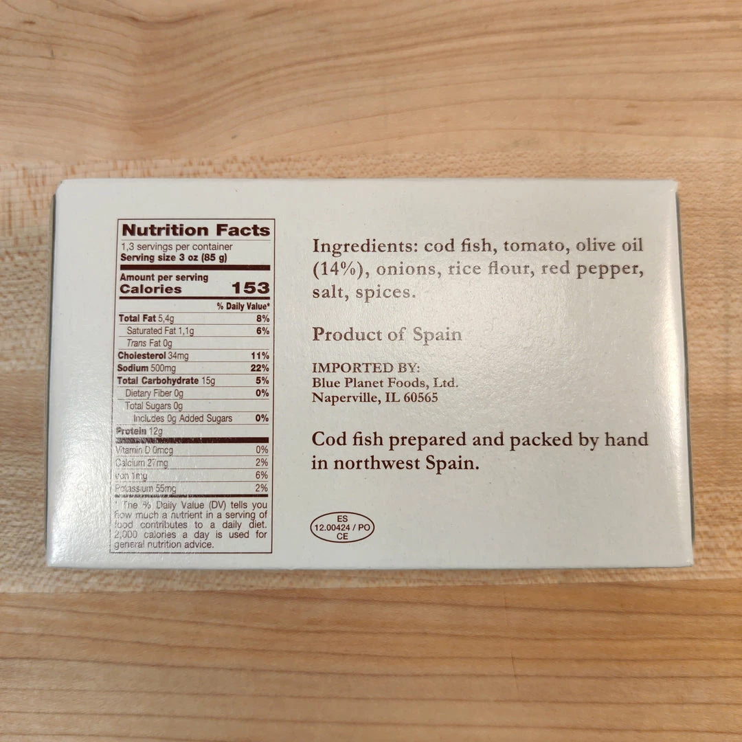 Cod fish (bacalao) in this style is synonymous with Basque Country. The tinned version is a take on the traditional dish that allows maximum enjoyment of the flavorful offering found at tapas bars across the country in convenient fashion. Always nice.