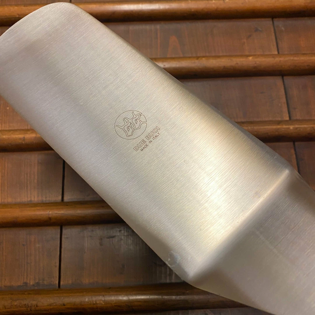 The lasagna spatula by Due Buoi is not just for lasagna: be creative and try this round-edged spatula to turn foods like burgers, steaks, hash browns and much more. The Italian-made construction and high-quality materials ensure reliability and durability for many uses.