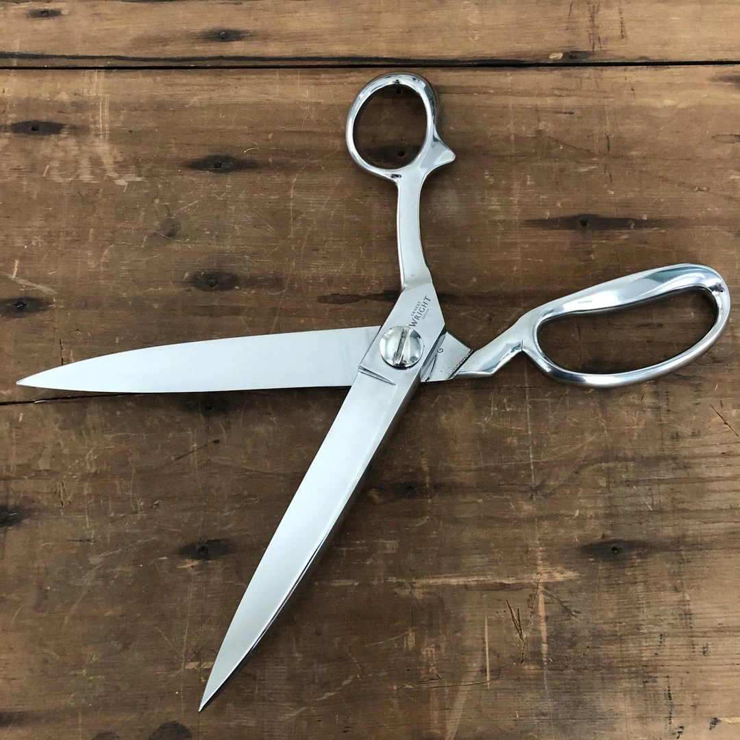 The 12″ hardened industrial shears are designed for hard work. Handmade and expertly put together, they have the same precision and feel that make Ernest Wright scissors world-famous; but with 6″ hardened carbon steel blades, they cut with confidence through all types of technical textiles. Comes with leather sheath.