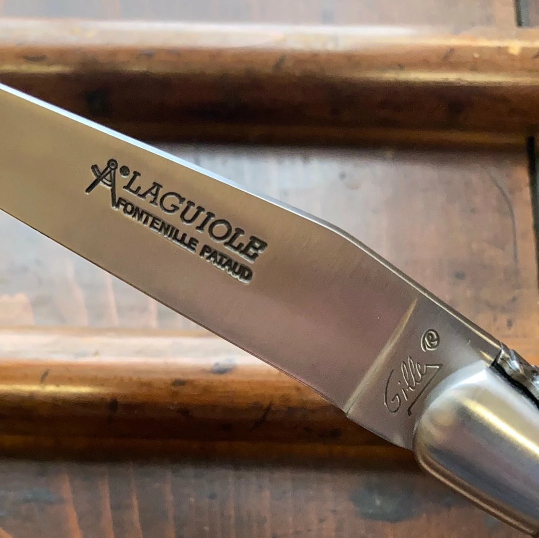 Fontinelle Pataud ‘Laguiole Nature’ full sized 12cm Laguiole features a lock-back mechanism, allowing the blade to open smoothly and stay locked in position while using. The traditional “Bee” is produced during the spring forging process.