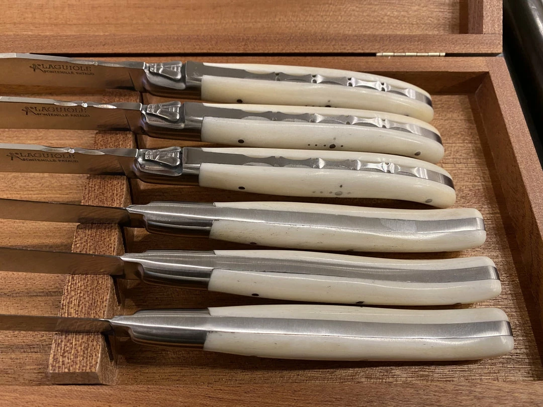 Fontenille Pataud Laguiole table knife set made in Thiers France with the high level of quality craftsmanship and finish that Fontenille Pataud is known for.