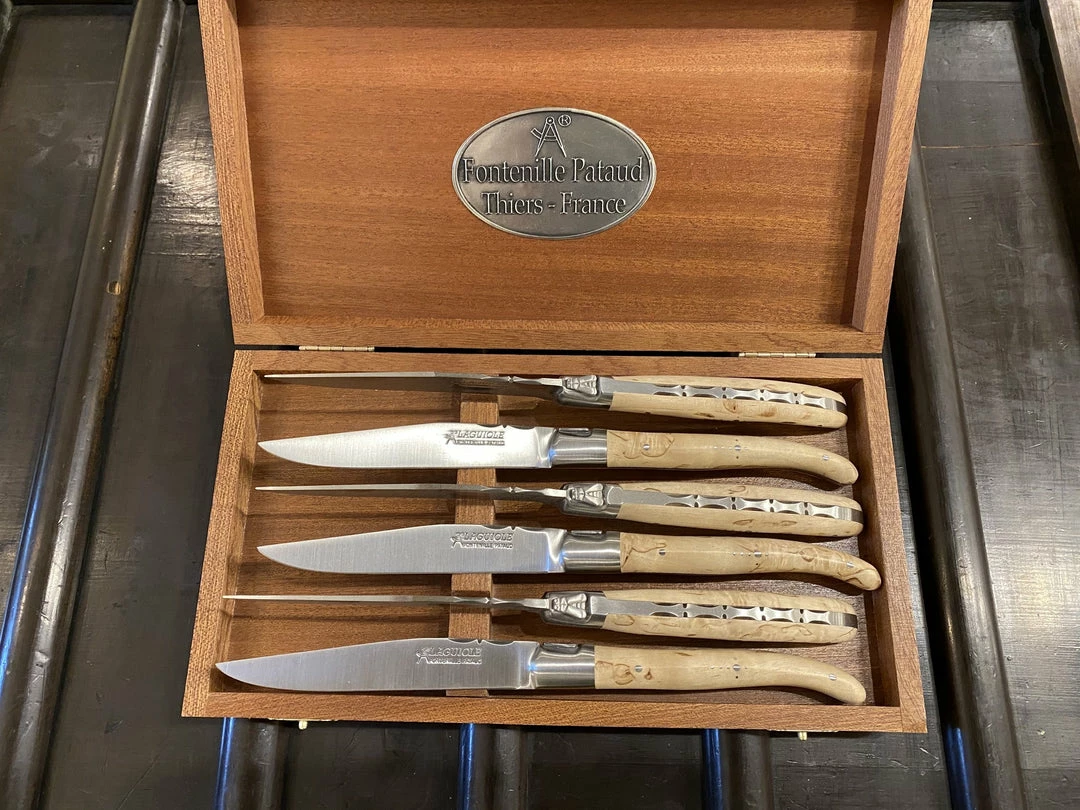 Fontenille Pataud Laguiole table knife set made in Thiers France with the high level of quality craftsmanship and finish that Fontenille Pataud is known for.