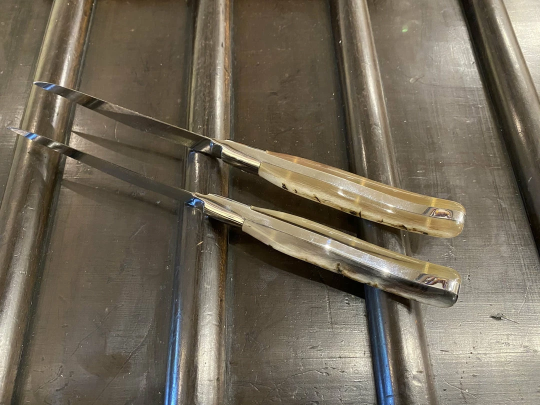 The Laguiole knife has a distinctive design influenced by the Spanish Navaja. A smaller, more tactile version was made for the sheep-herders on the Aubrac plateau in France, and was named after the town Laguiole. In addition to the iconic โbeeโ or โflyโ on the spring, typically they feature a semi yataghan shaped blade, a slip joint mechanism with a slim tapered handle made from natural material, traditionally cow horn.