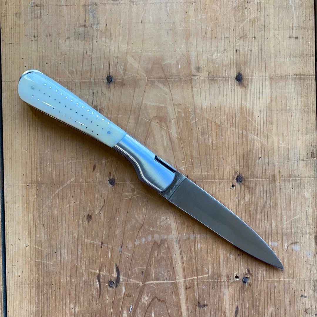The ‘Corsican Vendetta’ knife was invented in Thiers for tourists visiting Corsica in the latter half of the 19th century. It has made it’s way into the lexicon of regional French knives even though it owes it’s origin to imagination.