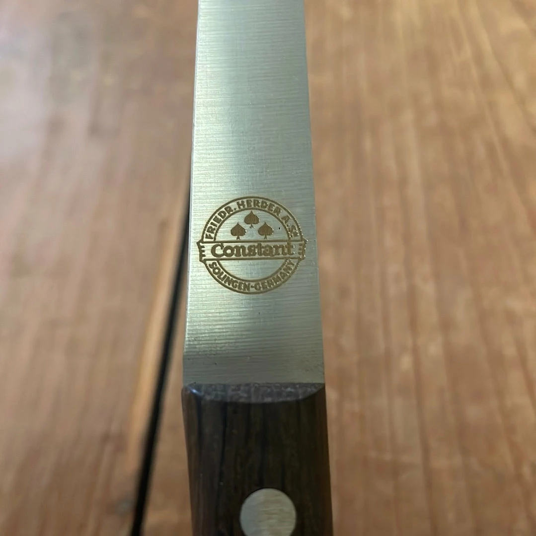 3″ stainless steel western paring knife with riveted wood handle this knife is a rebirth of Friedr. Herder’s mid century Constant brand of stainless knives that were high quality hand ground stamped stainless knives.