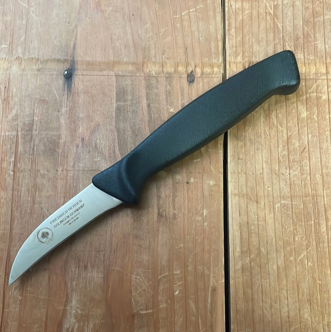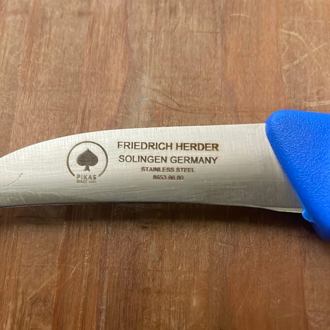 Friedr. Herder Abr Sohn company is the longest continually operating knife making operation in Solingen Germany. It’s famous Pikas spade logo was registered in 1727 although their place in Solingen’s blade making traces further back. Friedr Herder has kept many old patterns in carbon steel in production and offers a variety of new production knives for professionals and home cooks.