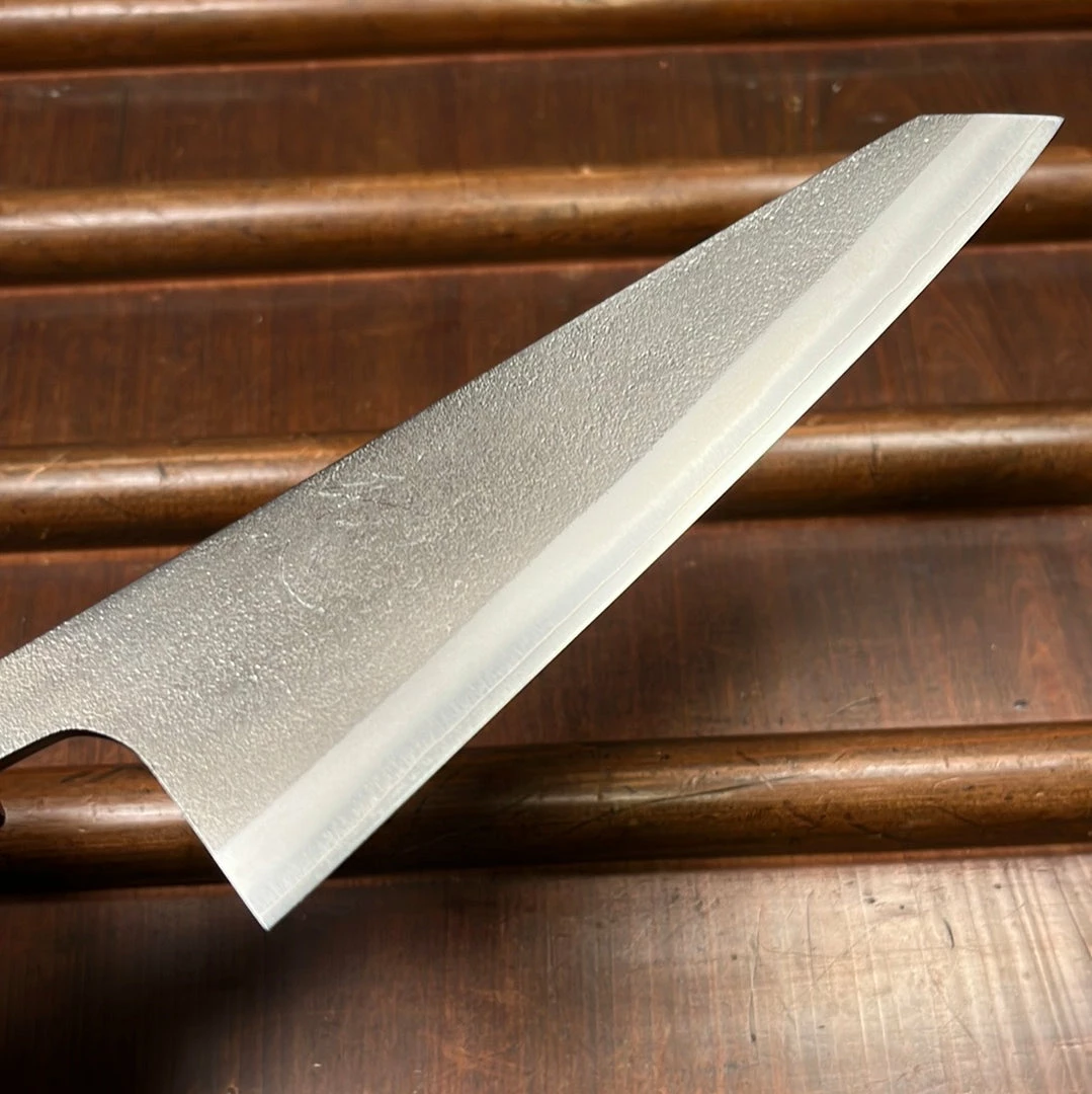 Yoshikane is headed by Kazuomi Yamamoto the fourth generation to operate this family run forging and grinding operation in Sanjo, Niigata whichย has been making kitchen knives since 1919. They deserve their good reputation for excellent forging and heat treatments, which make for easy sharpening and great edge life for both single and double bevel knives. This is especially true about the thin grinds provided on their double bevel knives. For middleweight Japanese knives, they cut like a much thinner blade.