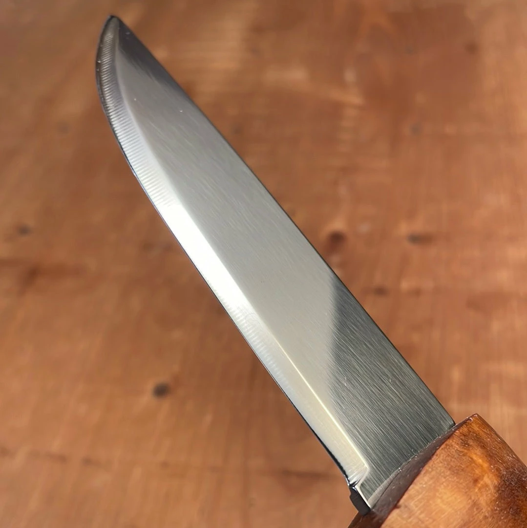 The knife is well shaped for all-round use, with a handle suitable for smaller to mid-size hands. The stainless steel blade makes Fossekallen even more versatile and suitable for a wide range of tasks. Comes with a snap type leather sheath for extra safe carry.