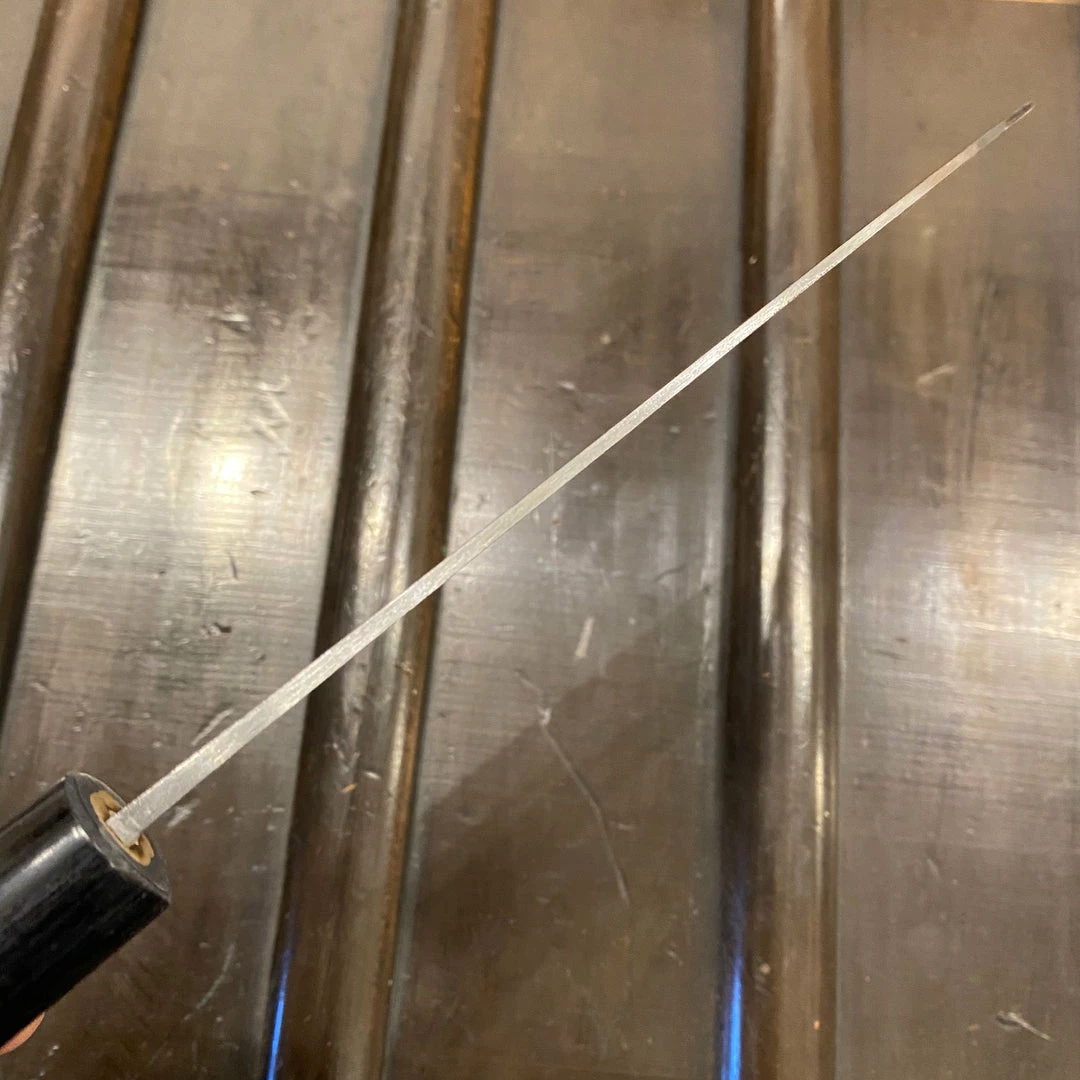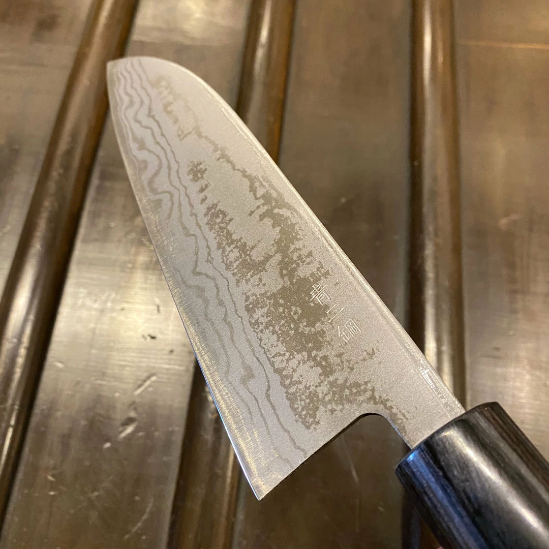 Hand forged in Takefu Japan for Hitohira to their specifications. Aogami 2 core with suminagashi cladding forged and ground thin with a nice taper. A nice heat treatmentย of the tungsten alloy offers both good edge life and easy sharpening.
