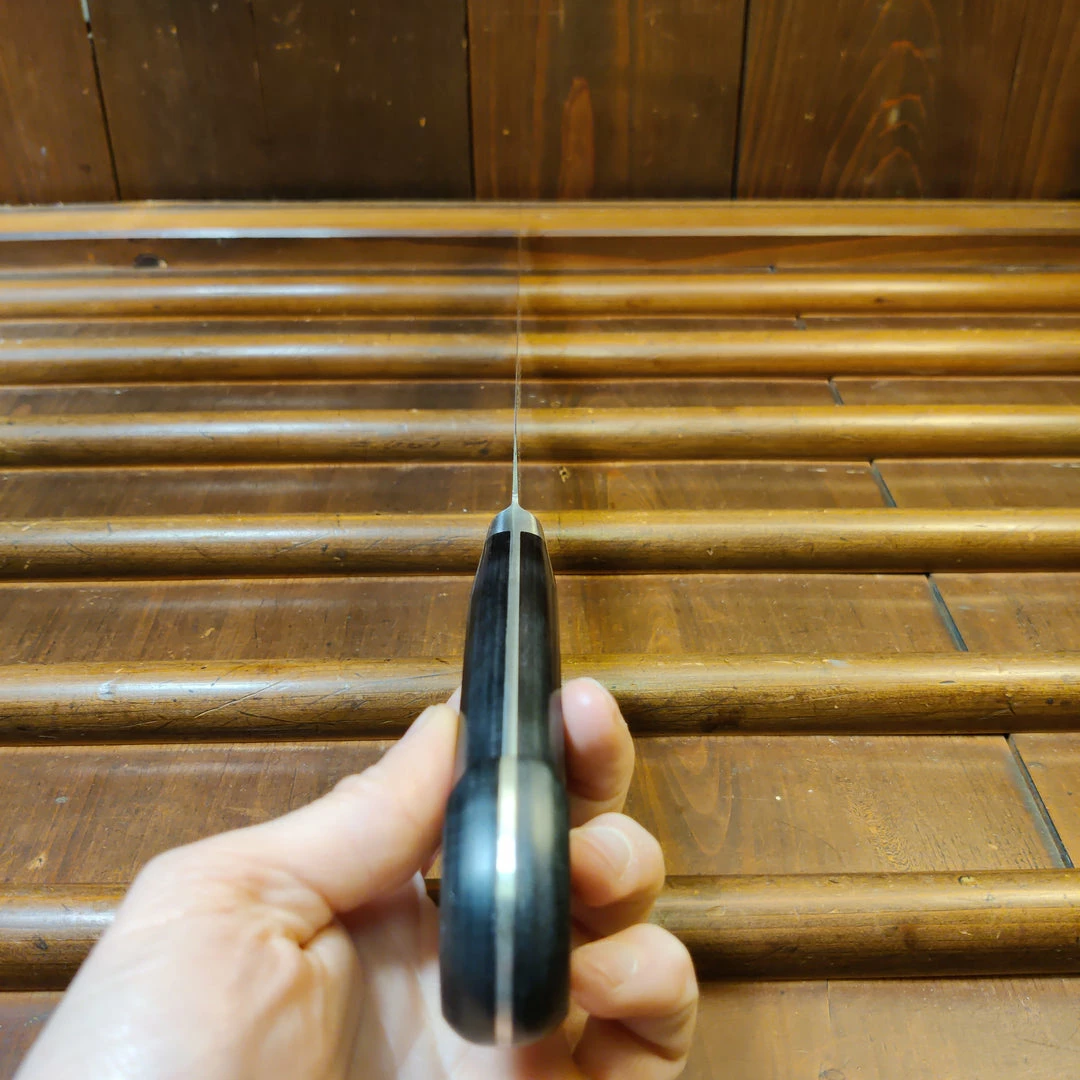 Japanese stainless steel blade with pakkawood composite handle. Thin Japanese stainless steel takes and holds a keen edge.ย