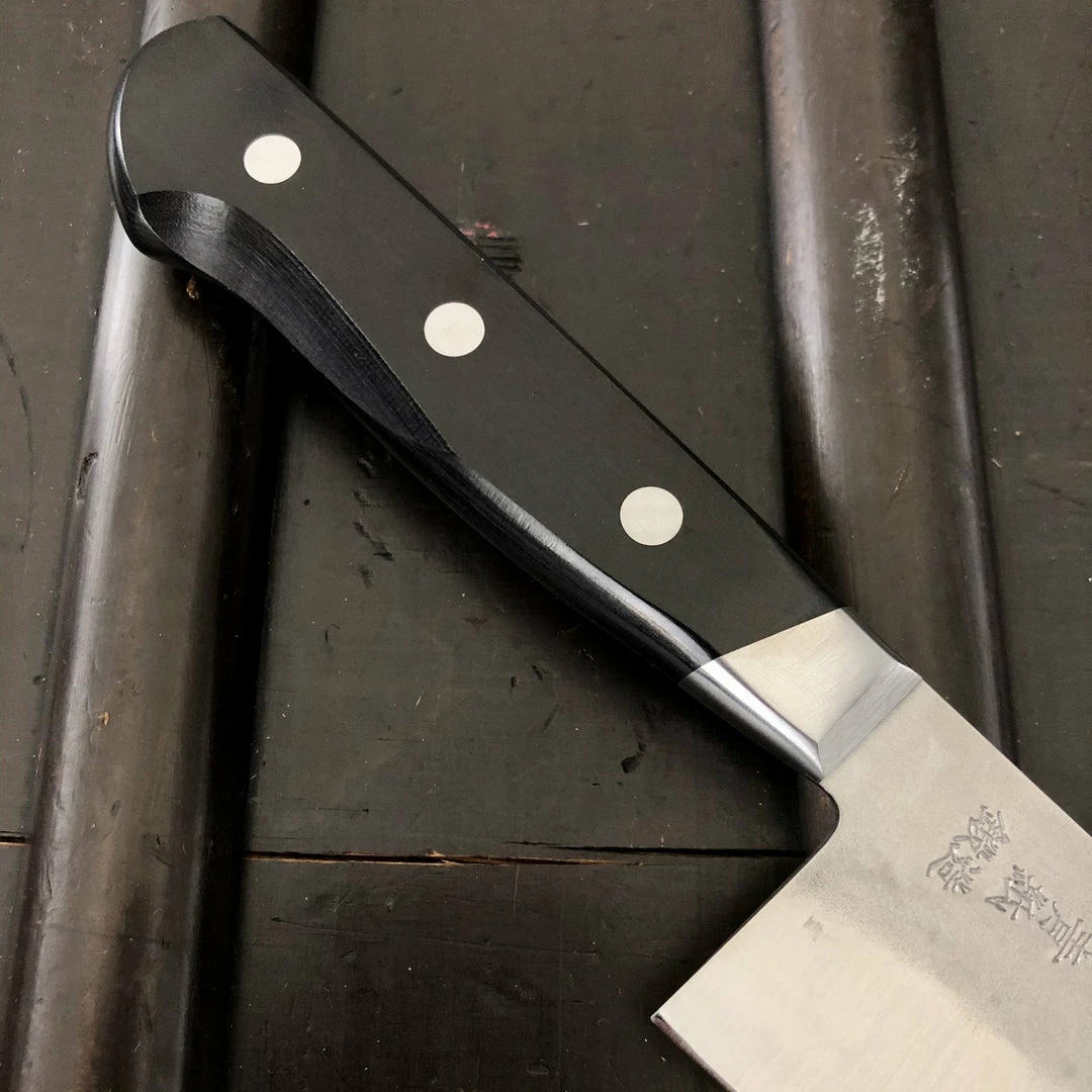 These factory forged knives made in Seki are a great value, high quality aogami 2 core with a moderate hardness (59/60 HRC) which allows for easy sharpening and good toughness, stainless cladding over the carbon steel makes for easy maintanace although care must be taken not to let them rust.