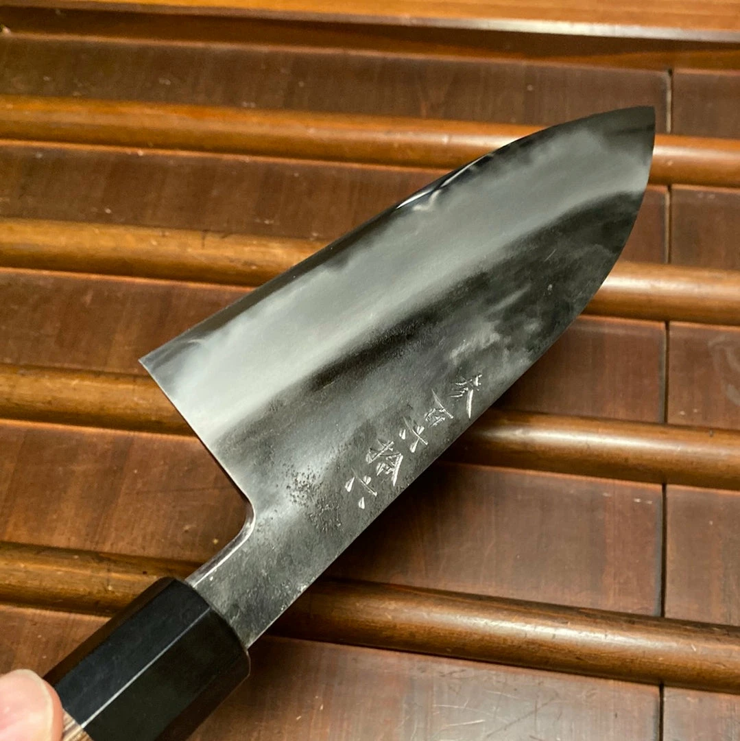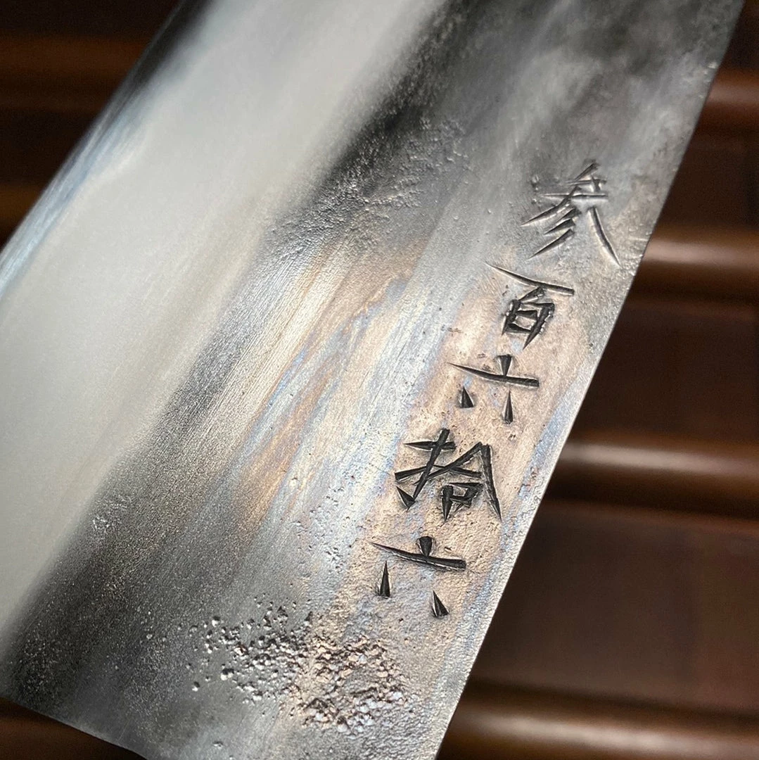 Hand forged in Nagano by blacksmithย Jiro Nakagawa in shirogami 1ย with a soft iron cladding.