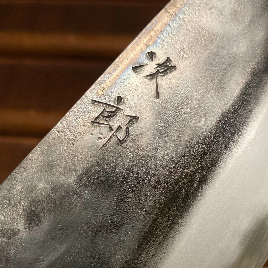 Jiro knives are hand warikomi forged, ground and finished according to old techniques by hand, there are little industrial processes employed, therefore not many knives are produced but the quality is top notch. Jiro’s water quenched temper and careful heat treatments are exceptional and the edge formation and retention excellent with a great sharpenability.