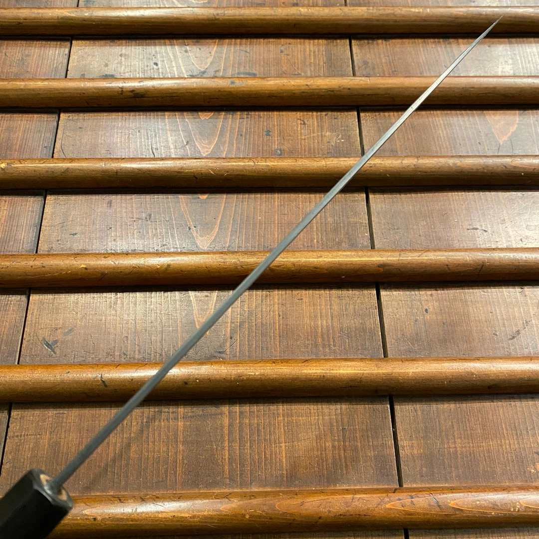 This way of finishing creates the dark and beautiful Kurouchi finish found on this special line. While both types of Kurouchi finishes can fade over time, the etching technique used by sharpener may fade faster.