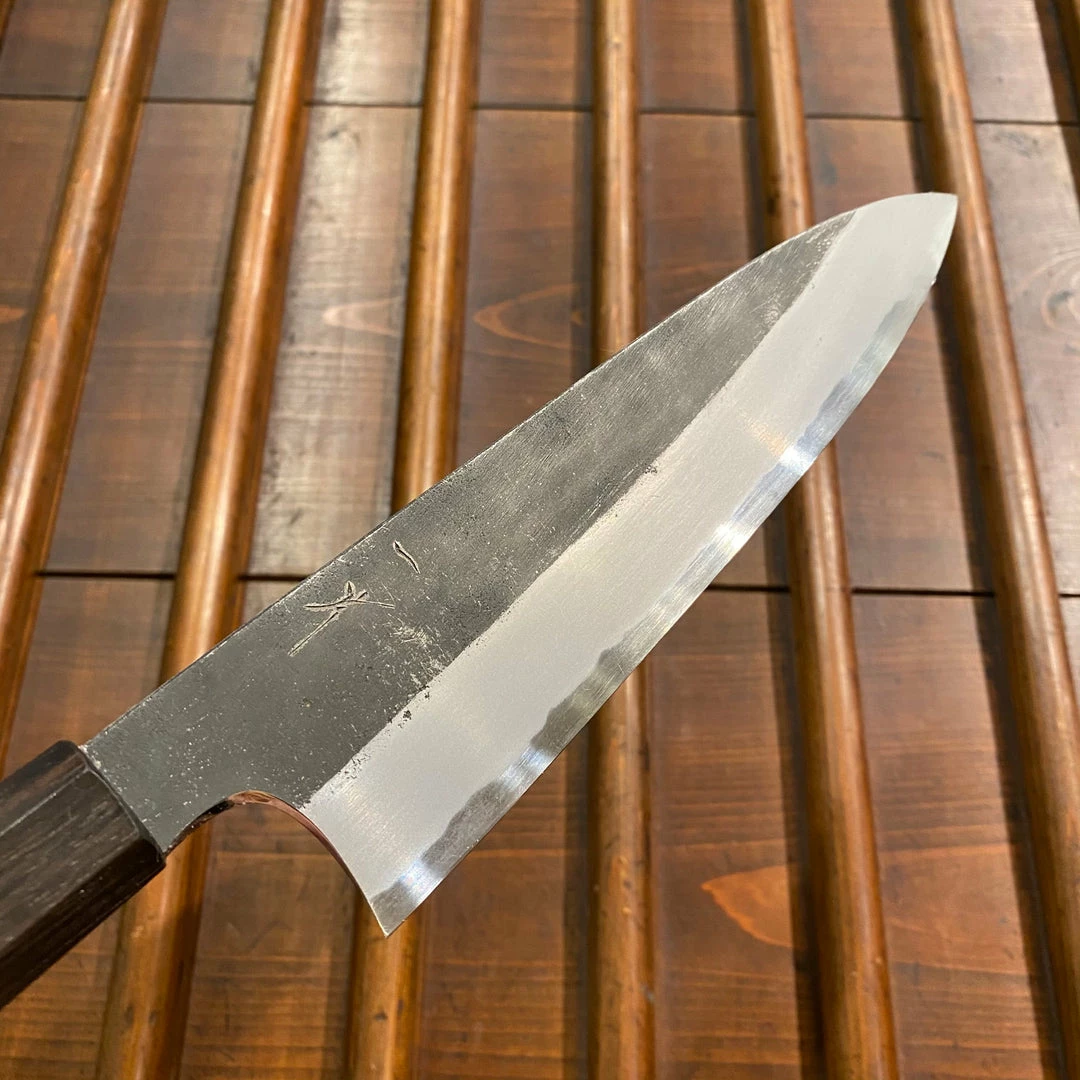 Hand made in Sakai. Kurouchi finished iron clad shirogami #2 gyuto forged by dentoukougeishi master smith Kenji Togashi and expertly ground by his son Kenya.