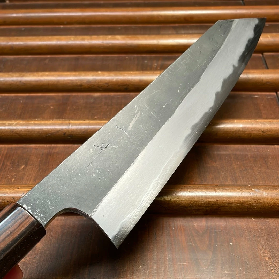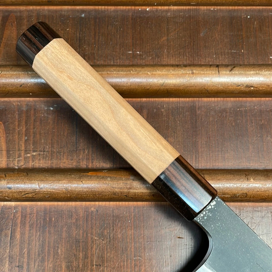Hand made in Sakai, kurouchi finished iron clad Aogami #2 forged by dentoukougeishi master smith Kenji Togashi and expertly ground by his son Kenya.