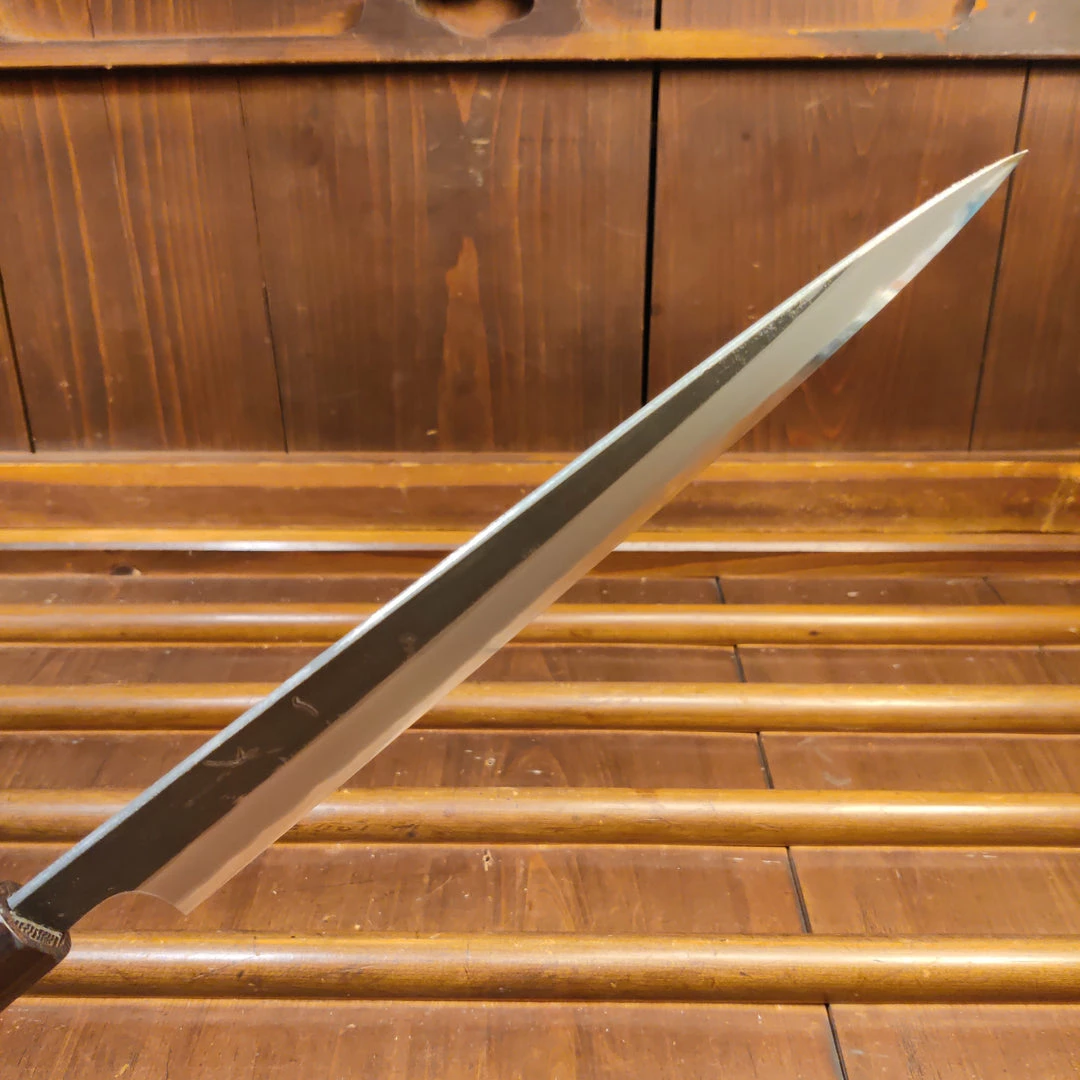 Hand made in Sakai, kurouchi finished iron clad shirogami #2 forged by dentoukougeishi master smith Kenji Togashi and expertly ground by his son Kenya.