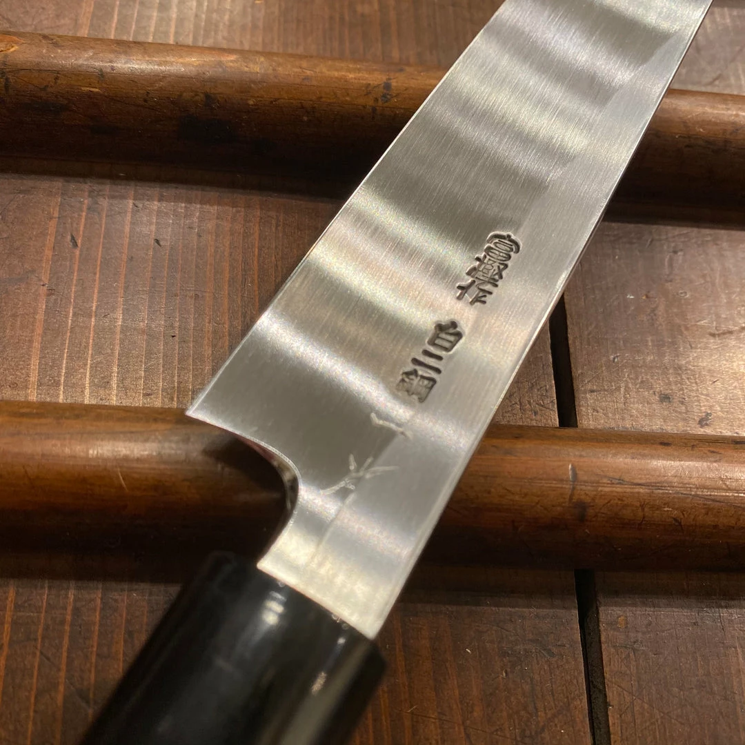 Hand made in Sakai, iron clad shirogami #2 forged by dentoukougeishi master smith Kenji Togashi and expertly ground by his son Kenya.