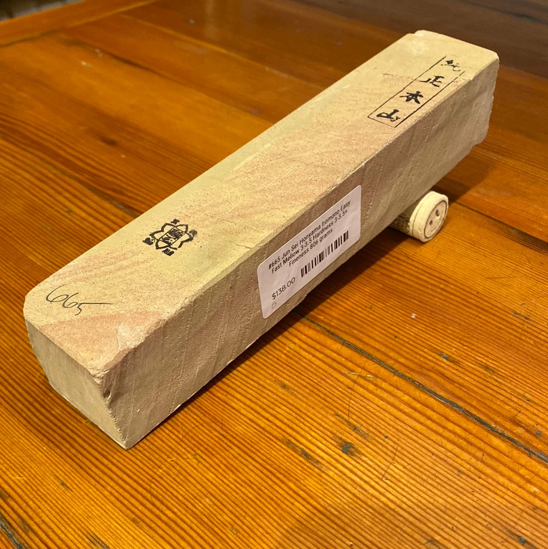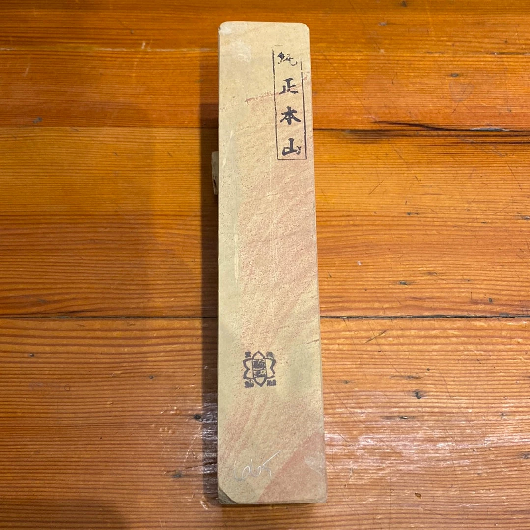 Marked only Jun Sei Honyama (genuine Honyama) these koppa (small, off sized or irrregular stones) are old stock stones from an old established stone dealer in Kyoto. The mark is somewhat vague, no mine or strata but they are excellent stones, priced low for their lack of specific ID and smaller size, not for their performance, they sharpen way better than what their price tag might suggest.