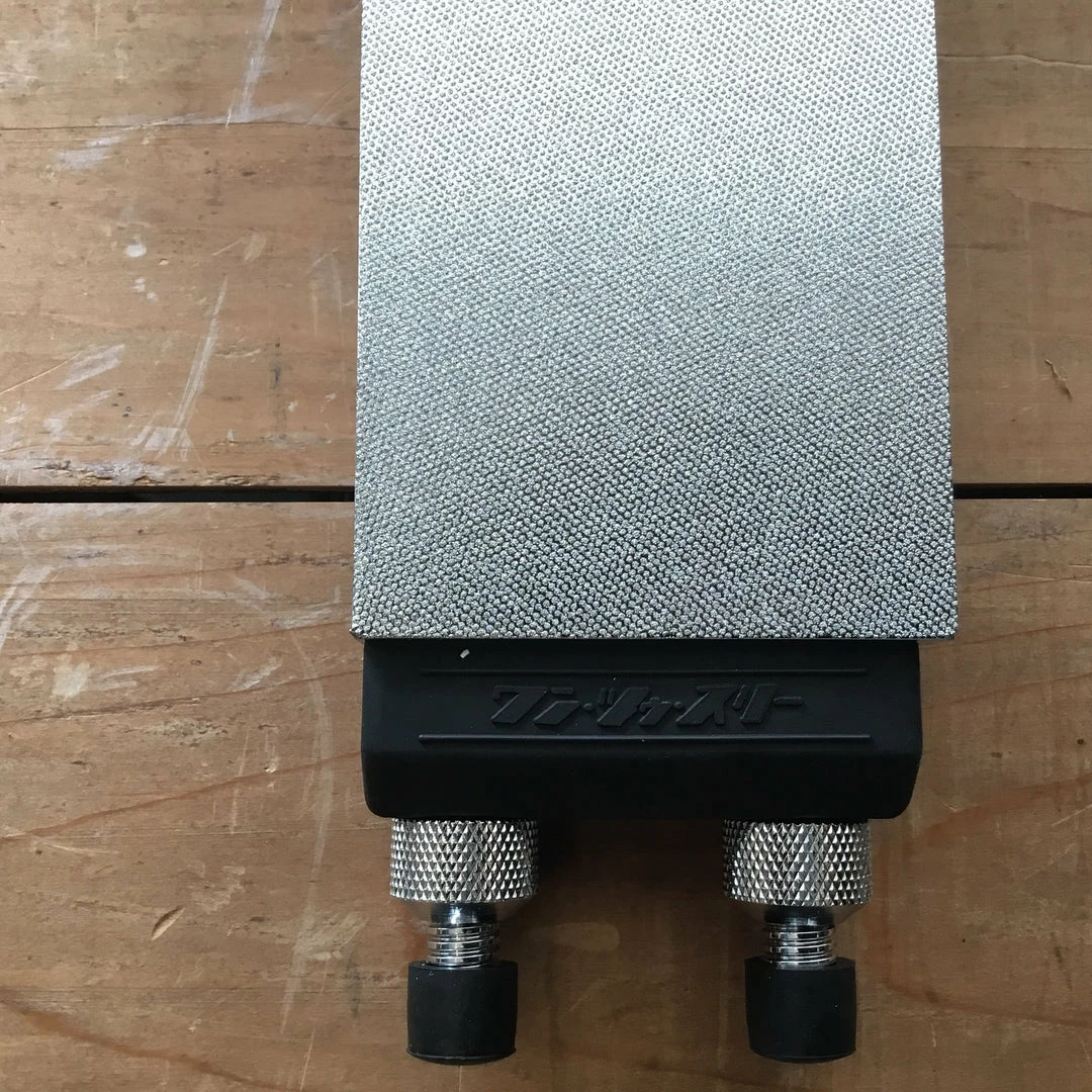 It especially is great for flattening hard ceramic stones. This is our go-to for flattening here in our shop, as we are using a number of different stones all day. It is great for flattening the bottoms of natural stones however we typically recommend the 400 Atoma for flattening natural stones. Fine stones (3000 grit plus) should be smoothed over with a nagura after using this stone.