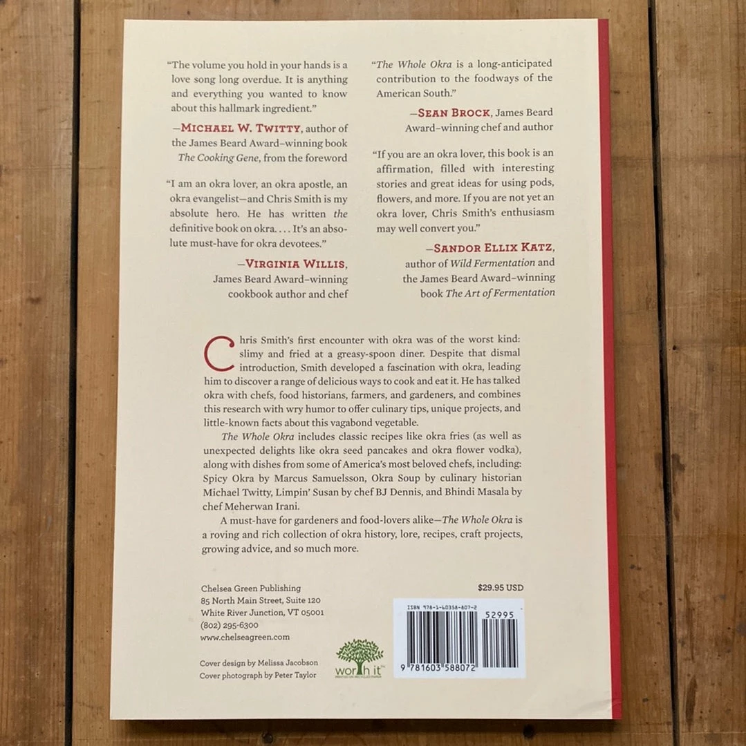 The Whole Okraย is foremost a foodieโs book, but Smith also provides practical tips and techniques for home and market gardeners. He gives directions for saving seed for replanting, for a breeding project, or for a stockpile of seed for makingย okra oil,ย okra flour,ย okra tempeh, and more. Smith has grown over 75 varieties of okra, and he describes the nuanced differences inย flavor,ย texture, andย color; the best-tasting varieties; and his personal favorites. Smithโs wry humor and seed-to-stem enthusiasm for his subject infuse every chapter with just the right mix of fabulous recipes and culinary tips, unique projects, and fun facts about this vagabond vegetable with enormous potential.