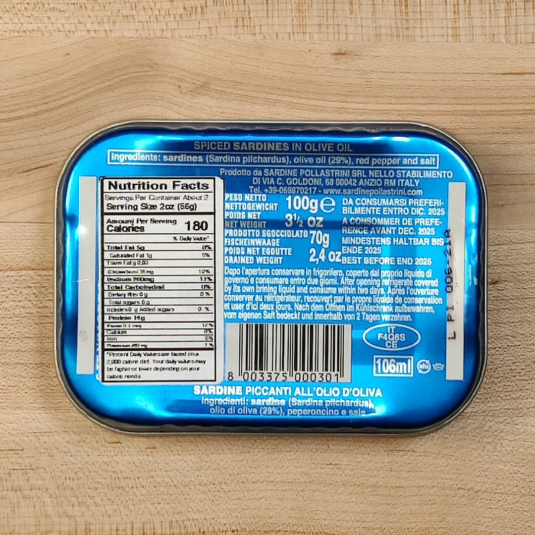 Pollastrini di Anzio is the ONLY Italian brand that manufactures canned Mediterranean sardines. A smaller size sardine harvested with sustainable methods from the Mediterranean Sea, tinned in pure olive oil. Following a tradition carried on since 1889 the wild caught and hand selected sardines are cooked to perfect firmness and tined in top quality olive oil. No preservatives or additives, only the freshest fish perfectly preserved with the finest ingredients following traditional techniques and recipes.
