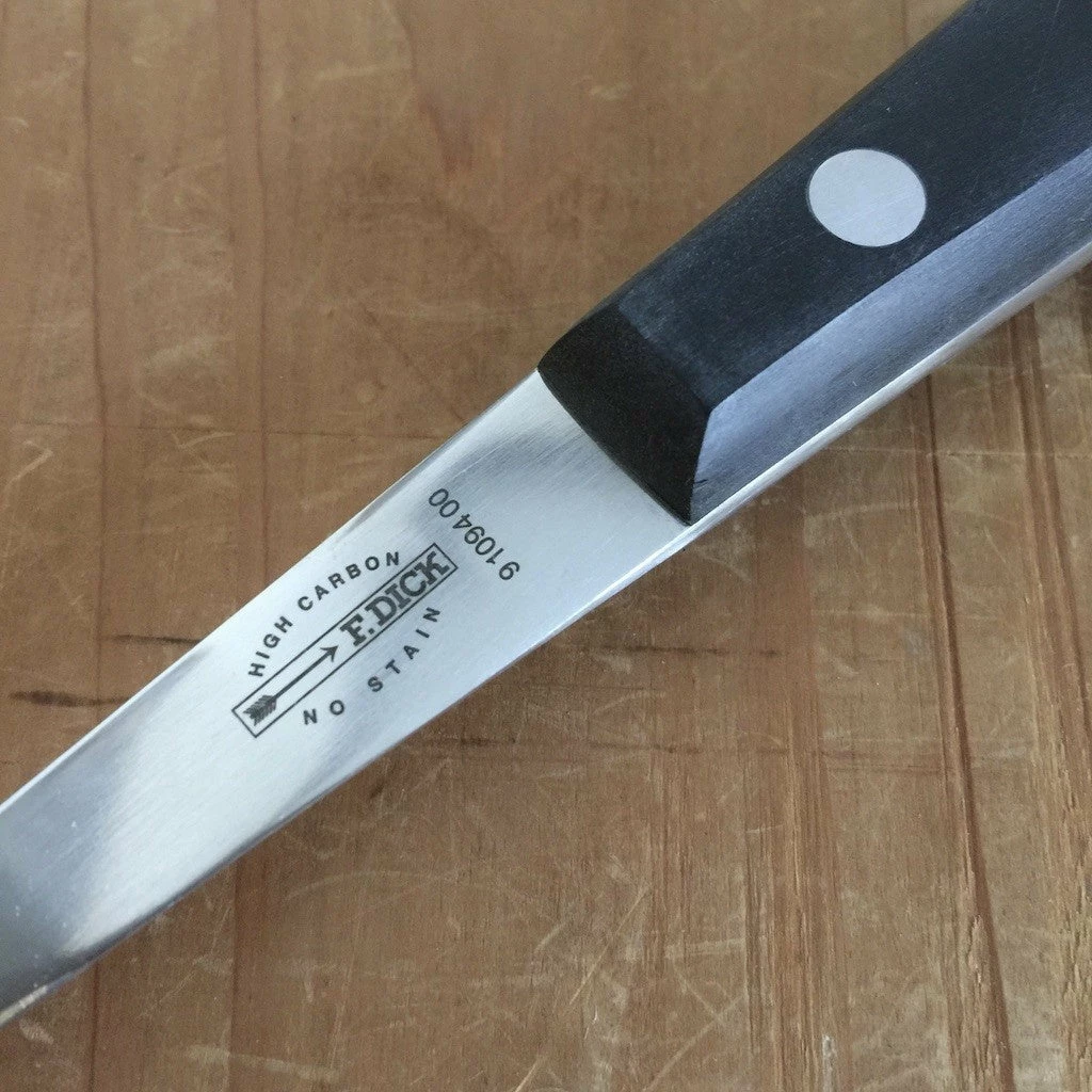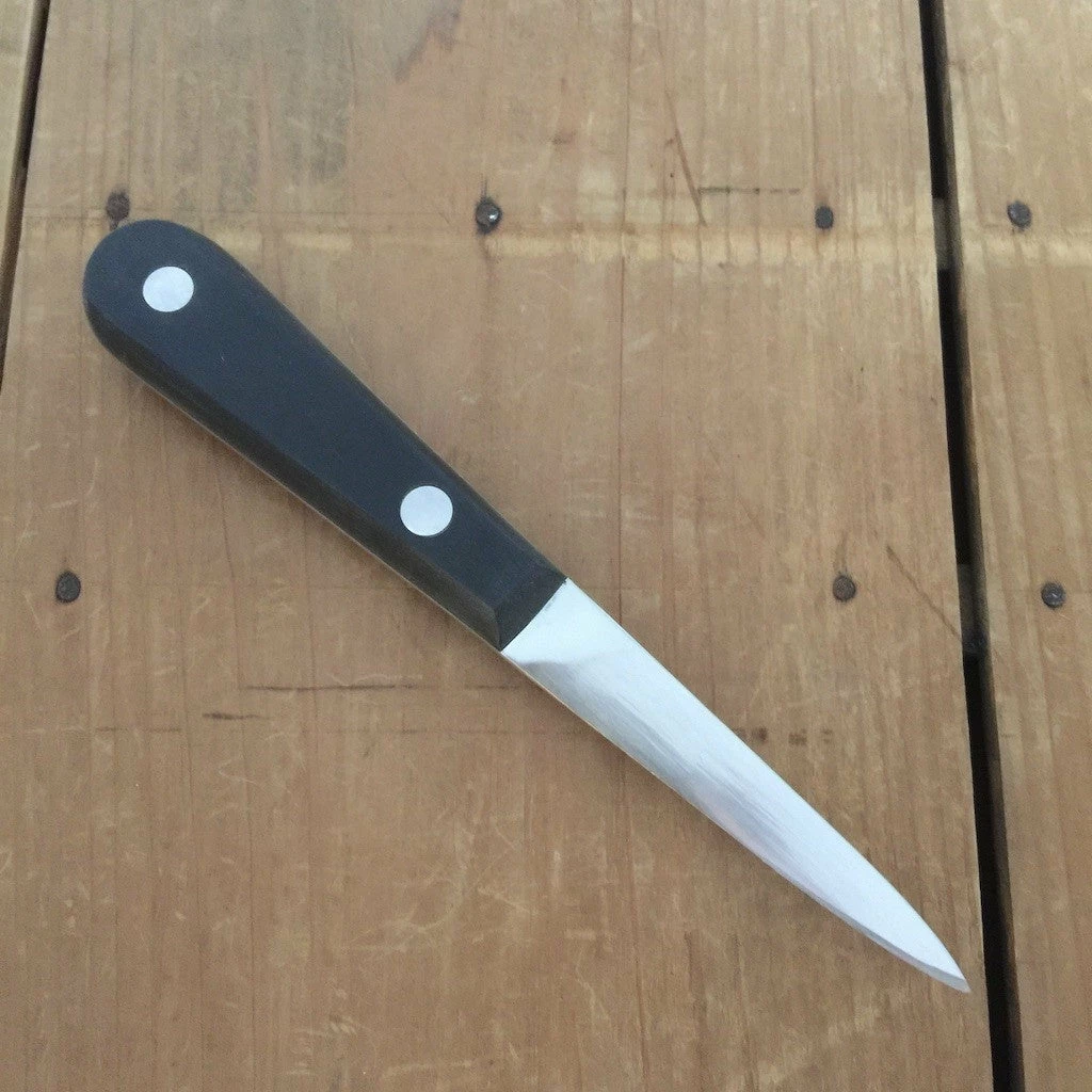 F. Dick Oyster shucking knife. 3″ Forged stainless steel pointed blade with riveted POM handle. Made in Germany.