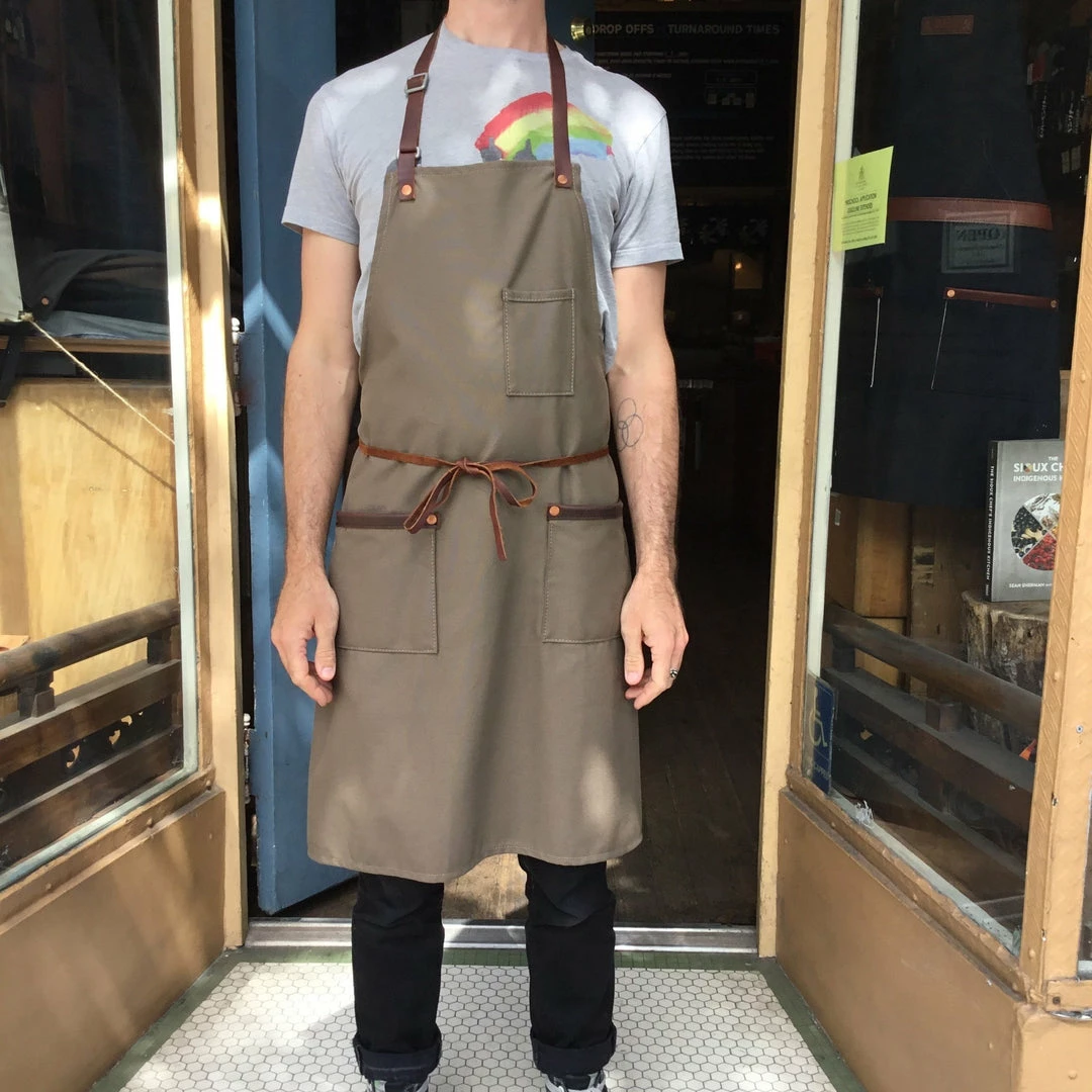 Hardmill industry apron made from durable canvas. Two front waist pockets, copper rivets, chest pen pocket and leather straps. Machine washable.