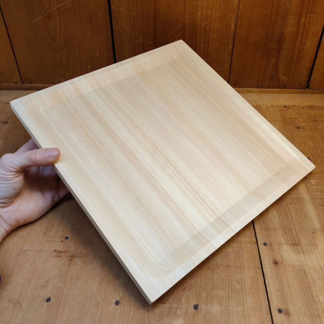 Hinoki wood is a dense and fragrant Japanese soft wood in theย cypress family with very strong anti-microbial properties. It is used in Japan traditionally as a surface for cutting and for hot tubs. Hinoki is very easy on edges, steak knivesย and table knives with fine edges that would normally dull on plates will have their edge life greatly extended with these plates.