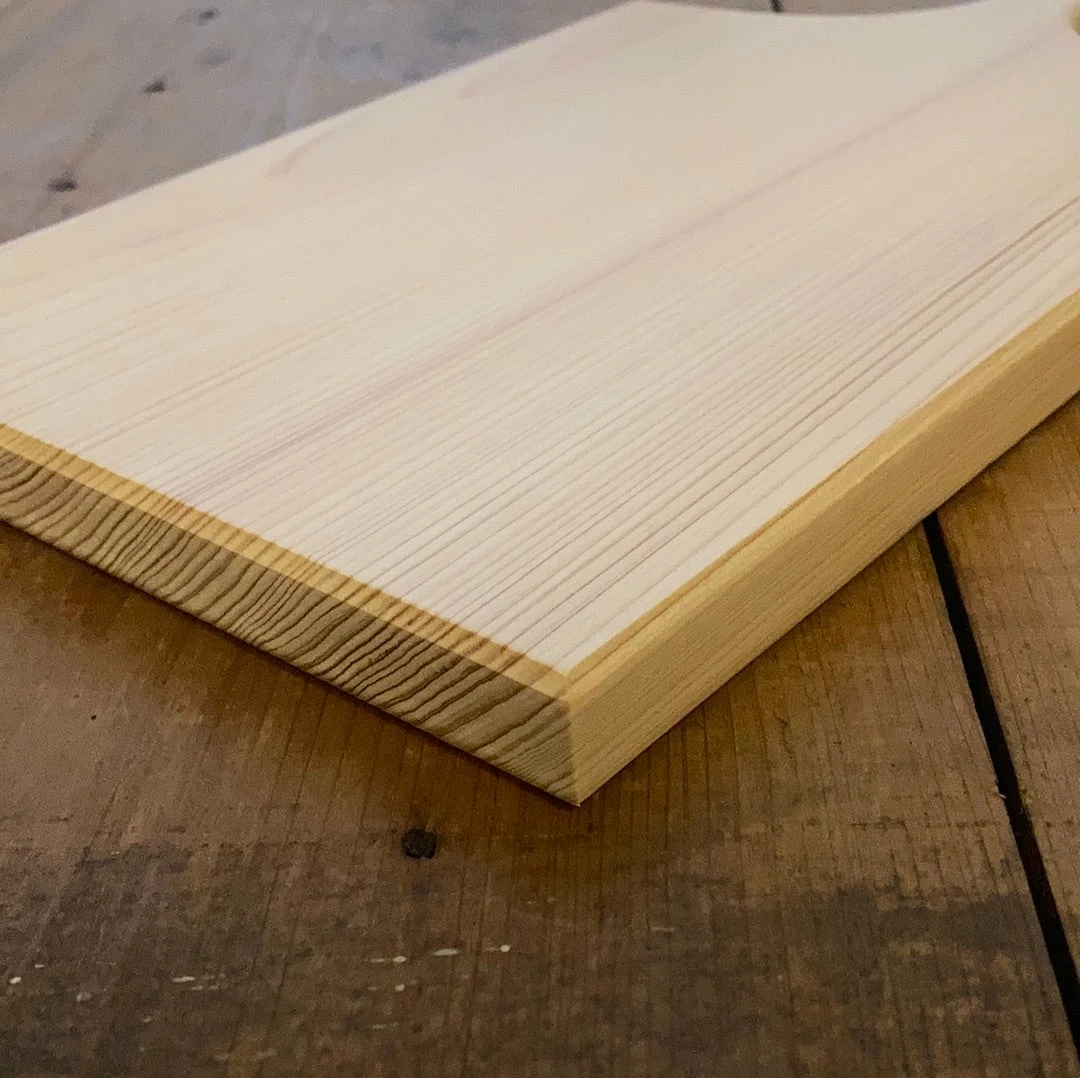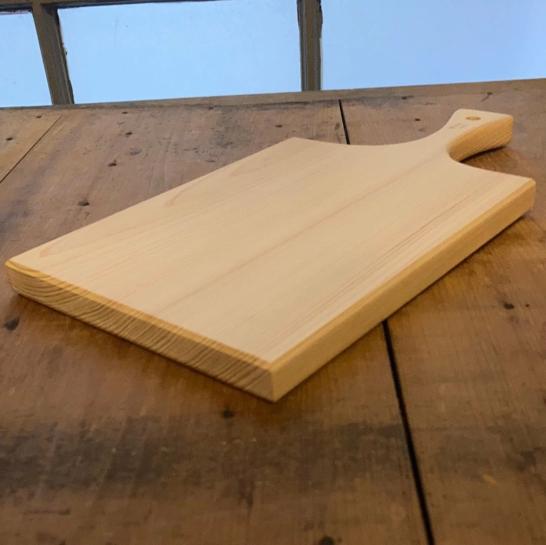 Our hinoki boards are handmade by Mitsuaki Kuramoto in Japan.ย This cutting board would be perfect as a secondary cutting board,ย for any smallerย work, or serving.ย For pleasure; not punishment.