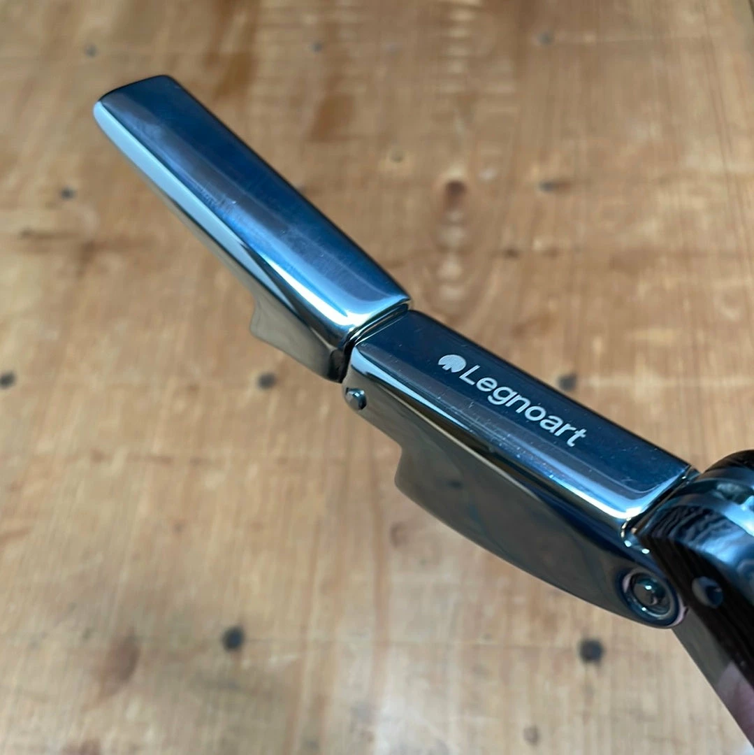 The double-hinged fulcrum of the corkscrew allows a very clean extraction of the cork, even longer ones. This system offers a substantial mechanical advantage over old-style single-hinged corkscrews.
