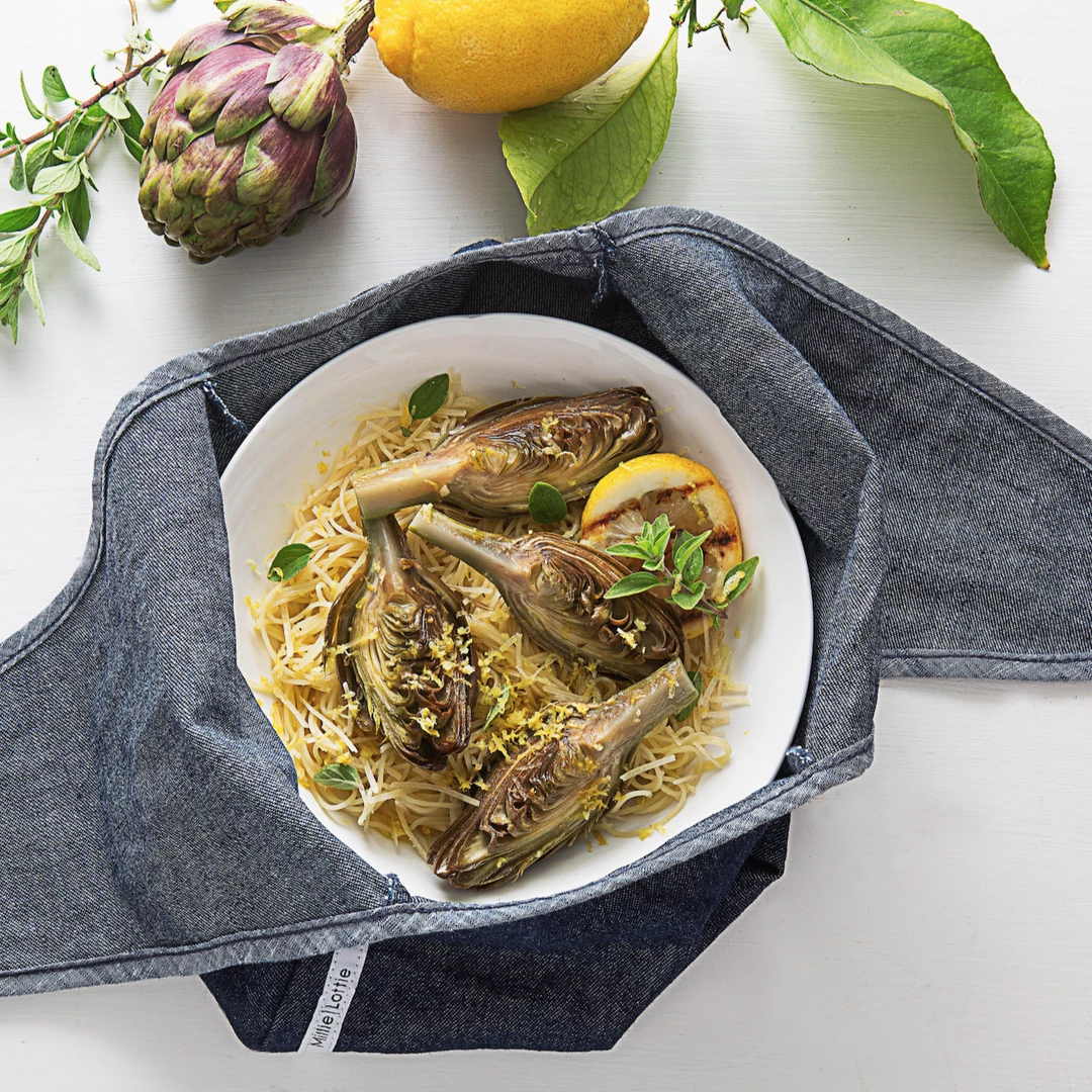 Milie | Lottie wraps are inspired by all cultures that carry food wrapped in cloth; tea towels as we used in the South; cloth around the globe; inspired by the Furoshiki in Japan. The Heirloom wrap was designed to be more ergonomic and flexible toย secure and carry a vast array of items in your kitchen.
