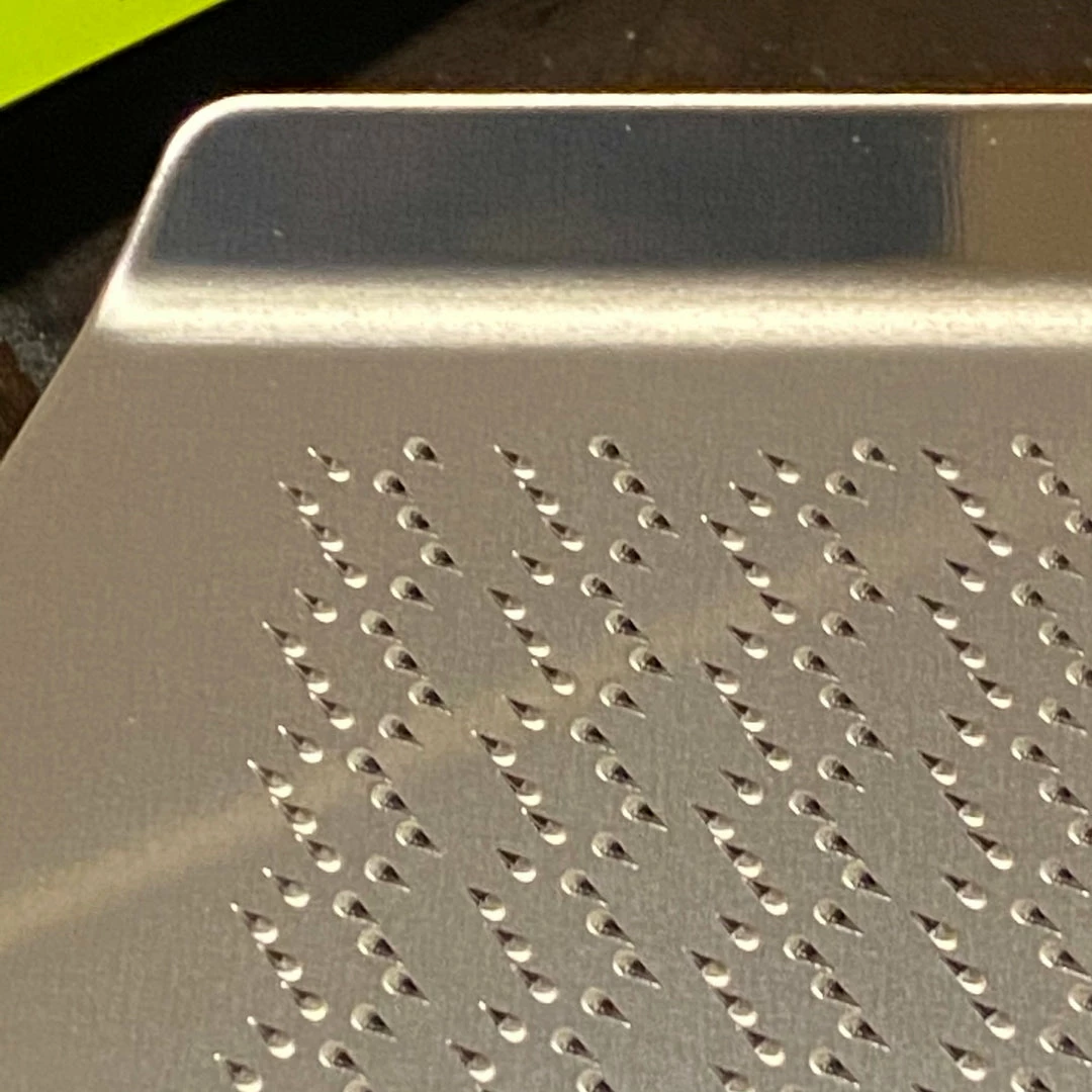 This oroshigane’s teeth are structured to replicate the grating feel of the traditional sharkskin graters. When grating wasabi, the intricate tooth pattern produces a creamy and fine texture, elevating the flavor. This tool would substitute grating other foods to very fine consistency; such as ginger, garlic, citrus skins, etc. In Japan, people sometimes use this grater to produce smooth baby food. Made with high-grade, durable 18-0 stainless steel.