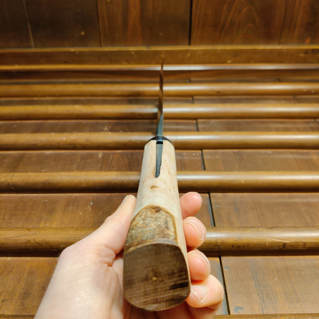 Fromย Niigata these hand forged laminated tool steel and mild steel nata are great old style Japanese tools. Not quite a machete, not quite a hatchet but with lots of overlapping between the tasks that would be asked of either of those tools. The hagane (cutting edge steel) is a bit softer than kitchen knives but still relatively hard, making these tools incompatible with hitting very hard surfaces or twisting in a cut on hard woods.ย