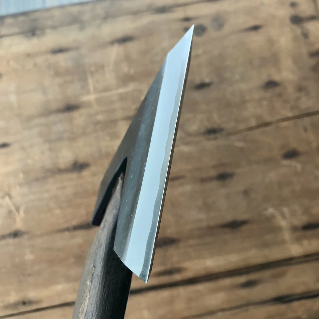 These axes draw on the toolmaking lineage of heavily forested Niigata, hand made in Sanjo Niigata at the Mizuno Seisakujo works under the supervision of dentoukougeishi blacksmith Isao Mizuno. These are forged from tool steel core treated to offer both toughness and good edge formation.