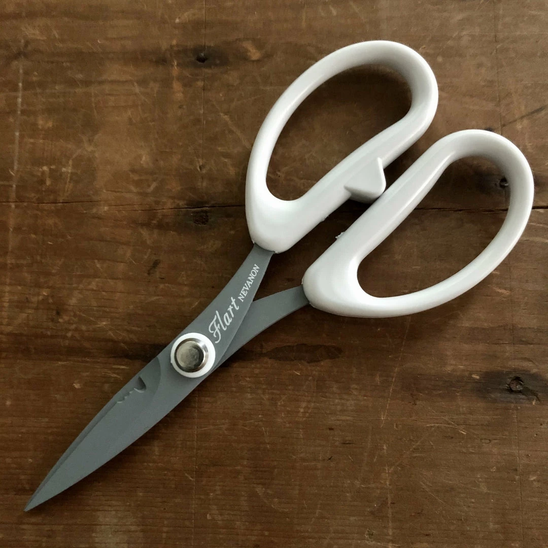 Non-stick coated carbon steel designed for flower work, also do nicely in a busy prep kitchen. Small serration on one of the blades make for an extra aggressive cutting ability. These have garnered a loyal following among cooks for their ability to be both a very precise smooth working smaller shear and a hard worker that holds an edge for a long time.